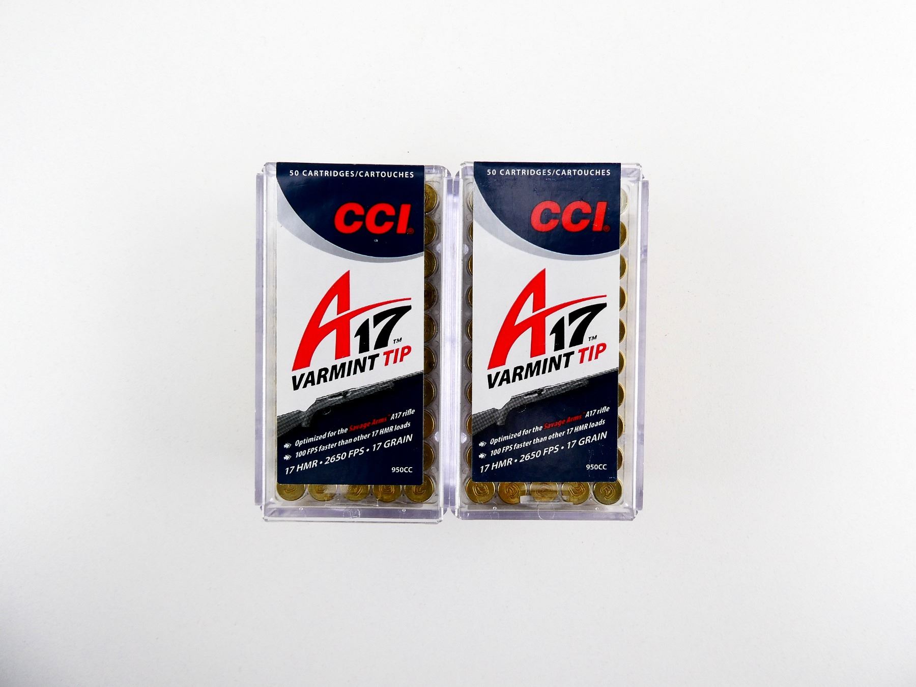 LOT INCLUDES; APPROX. (100) RNDS, 17 GRNS (STATED ON BOXES NOT CONFIRMED), VARMINT TIP, UNOPENED.