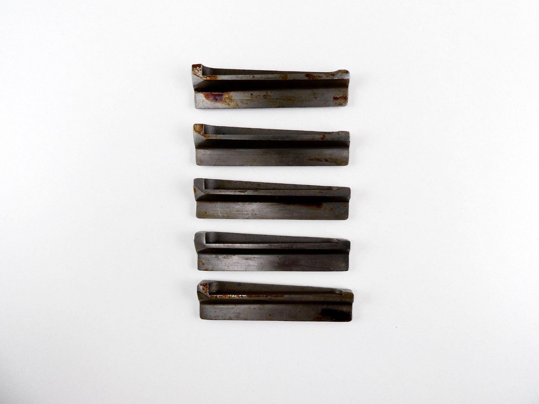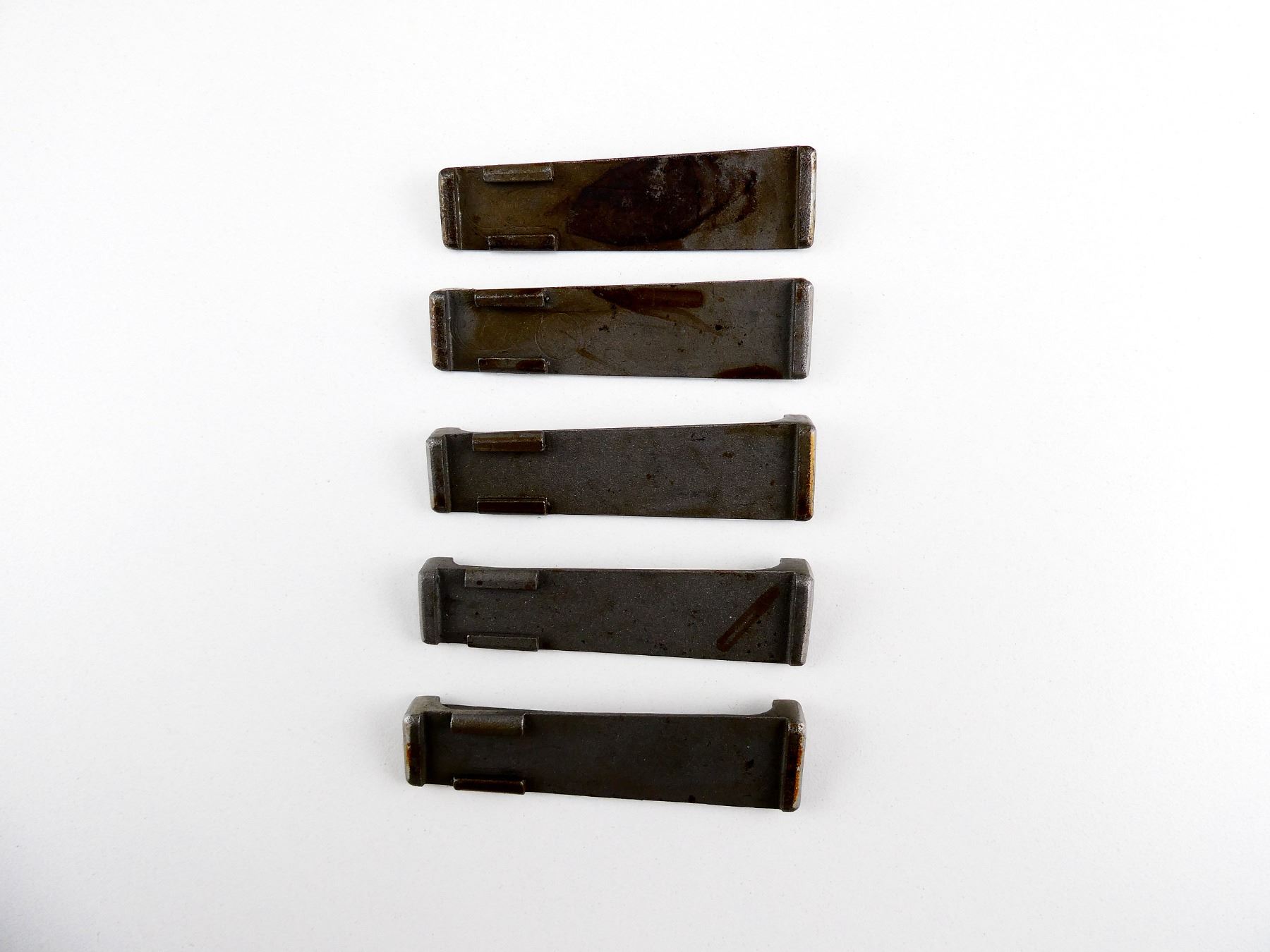 LOT INCLUDES; (5) MAG FOLLOWERS, IN THE WHITE STEEL CONSTRUCTION, UNMARKED. MAY REQUIRE FITTING. SEE PHOTOS.
