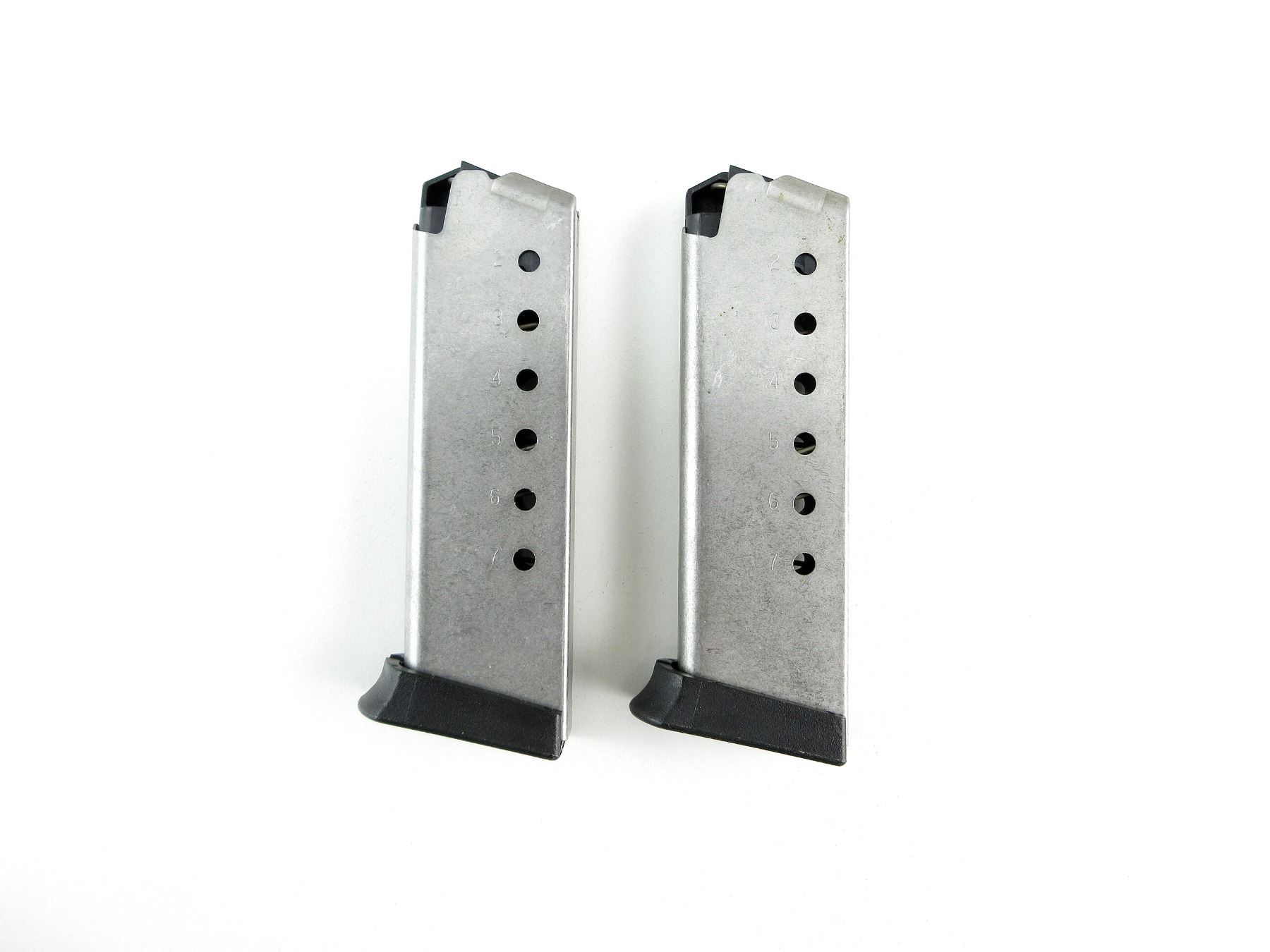 LOT INCLUDES; (2) FITS ASSORTED MODELS, .45 ACP MAGS, 7 RNDS, STAINLESS STEEL CONSTRUCTION, BLACK POLYMER FOLLOWER, MARKED: "45 CAL", ETC., BLACK POLYMER BASE. SEE PHOTOS. PAL REQUIRED.
