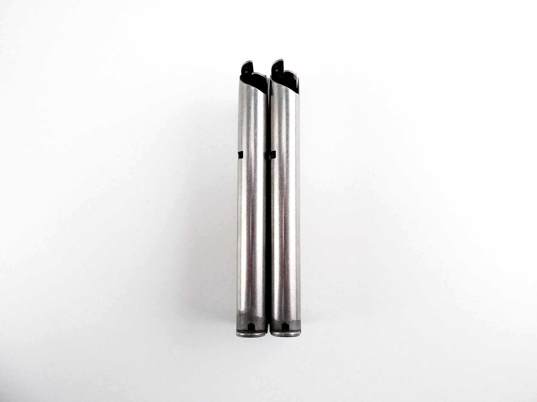 LOT INCLUDES; (2) 1911 .45 ACP MAGS, 8 RNDS, STAINLESS STEEL CONSTRUCTION, BASE MARKED: "COLT, 45 AUTO, 8-RND". SEE PHOTOS. PAL REQUIRED.