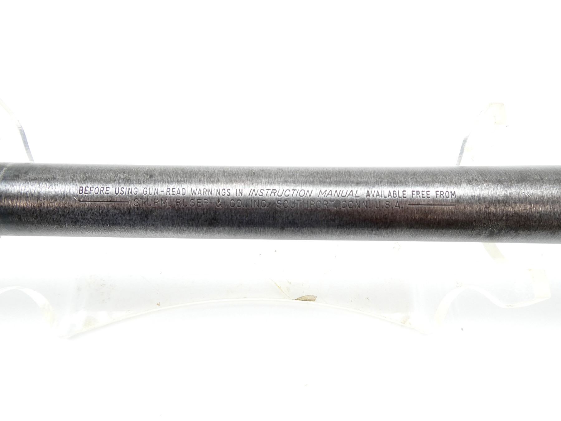 (1) BARREL, WORN BLUED STEEL CONSTRUCTION, .22 LR, BORE IS VERY GOOD, FRONT SIGHT, MARKED: "STURM RUGER & CO.", "22 LR", ETC., OAL APPROX. 18.5". MAY REQUIRE FITTING. SEE PHOTOS. PAL REQUIRED.