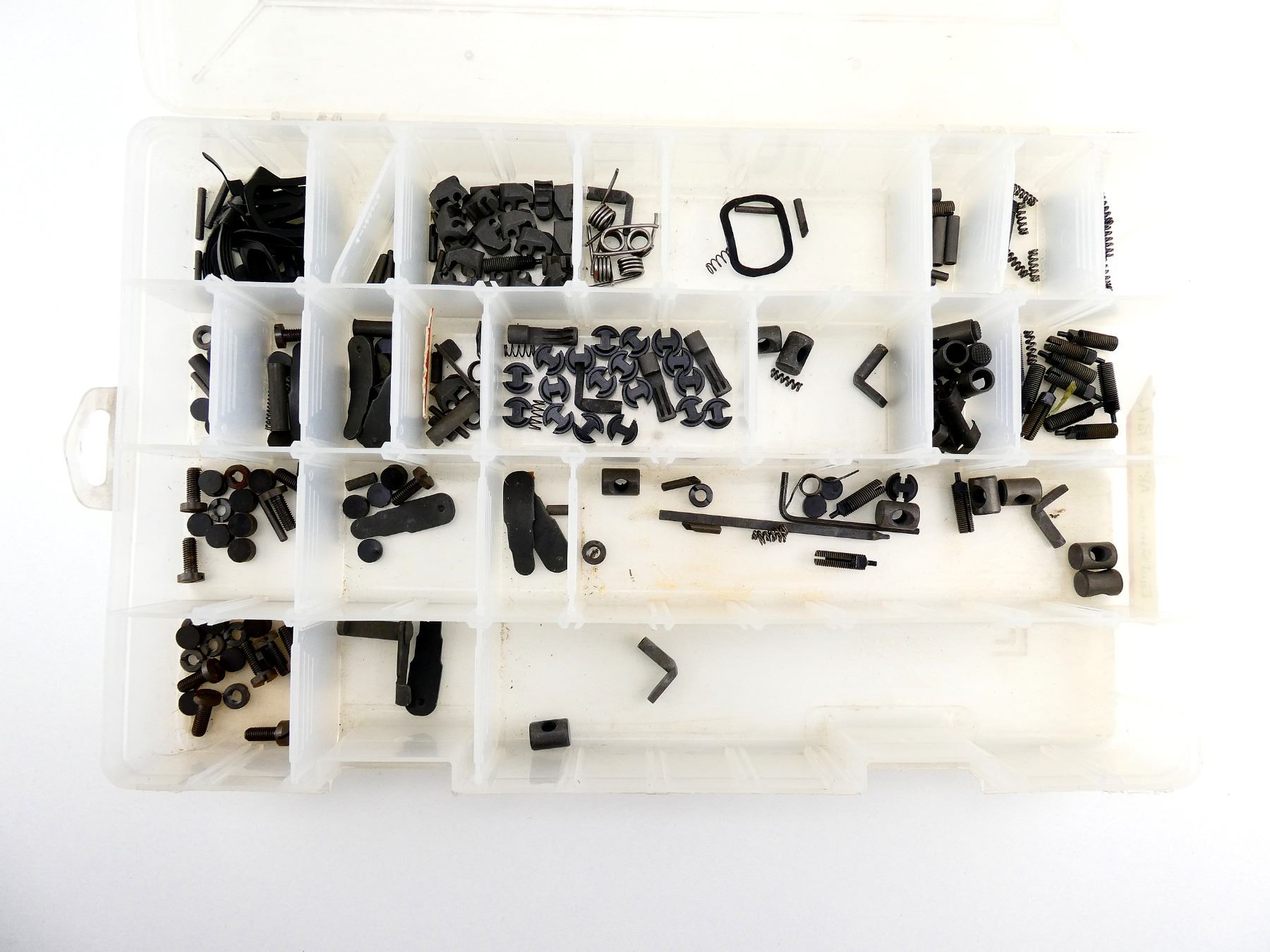 LOT INCLUDES; SCREWS, PINS, SPRINGS, FRONT & REAR SIGHT PARTS, EXTRACTORS, ETC. MAY REQUIRE FITTING. SEE PHOTOS.