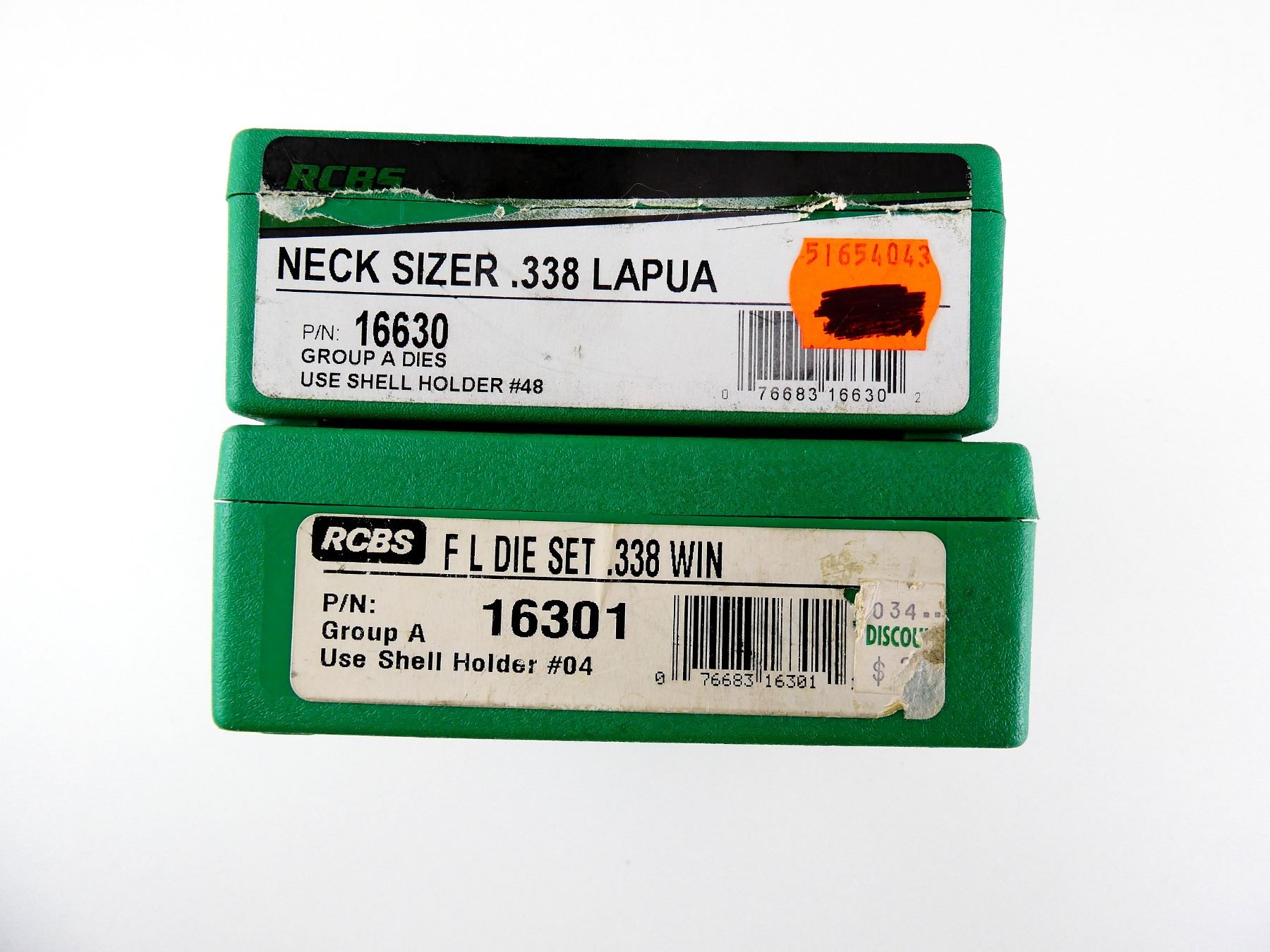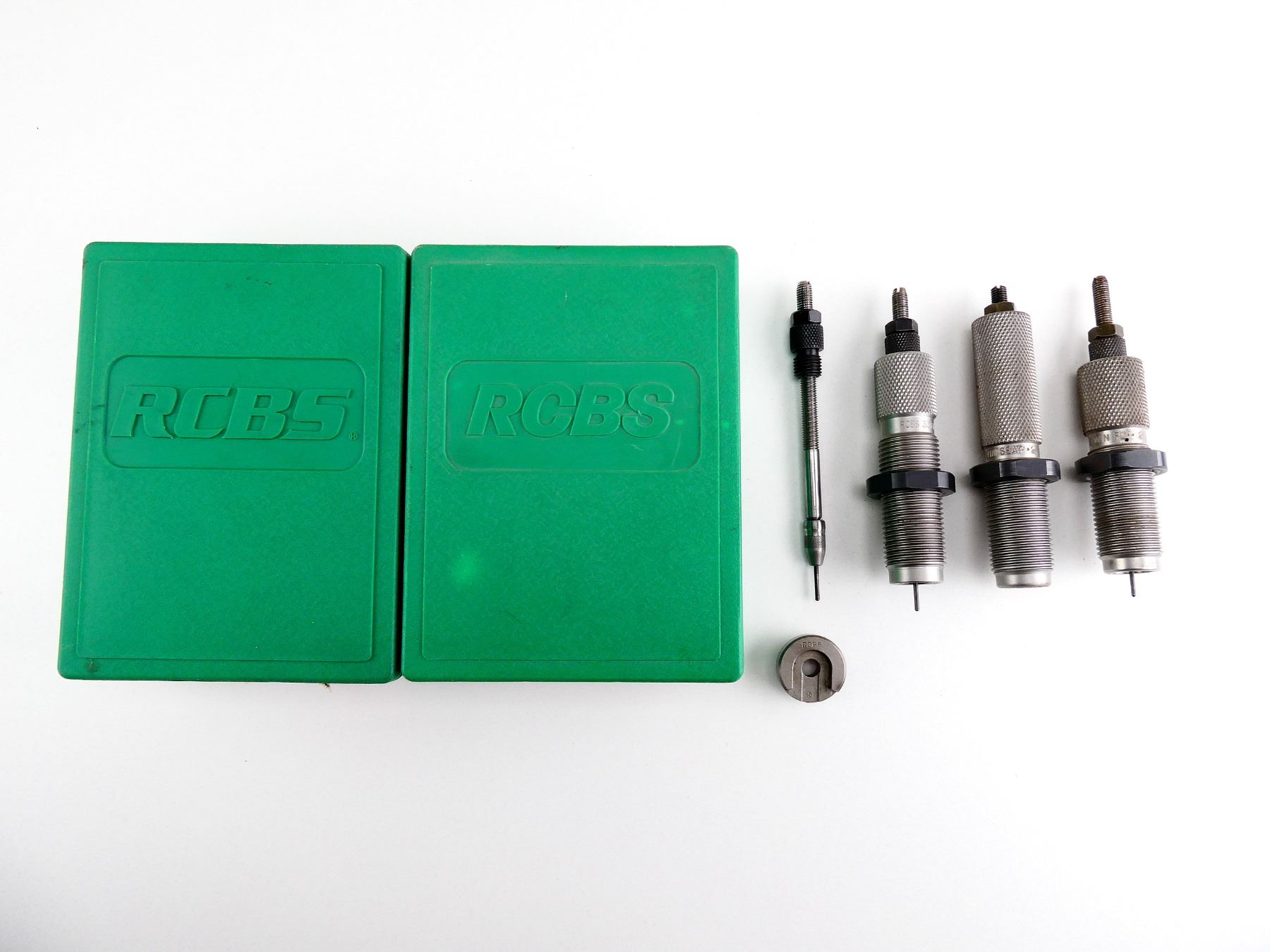 LOT INCLUDES; (1) RCBS .338 WIN 2-PIECE RELOADING DIES & (1) RCBS .338 LAPUA 1-PIECE NECK SIZER DIE WITH RCBS #5 SHELL HOLDER. SEE PHOTOS.