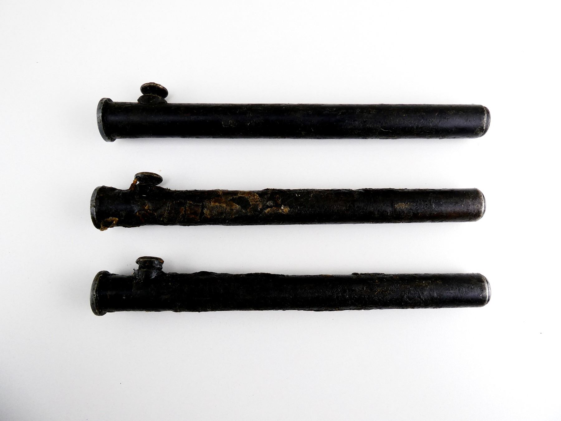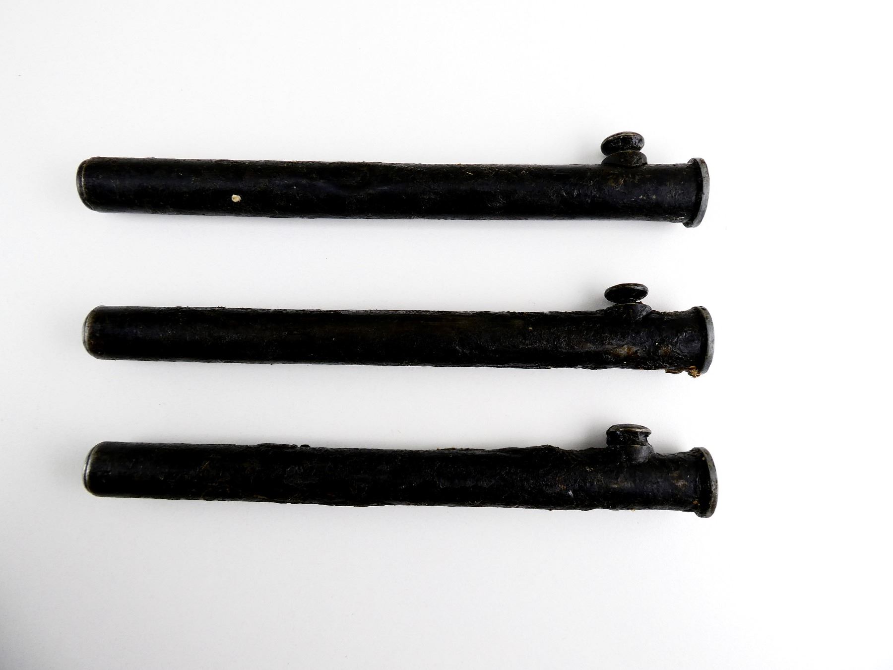 LOT INCLUDES; (3) FITS NO.4 MKII & NO.4 MKII* SPIKE BAYONETS, BLACK PAINTED STEEL NO.4 MKII SPIKE BAYONET SCABBARDS (NO BAYONETS), THROATS MARKED WITH BROAD ARROW, TWO WITH PROOF MARK, BOTTOMS MARKED: "S191 (FRANCO-BRITISH ELECTRICAL'S DISPERSAL CODE), OALS APPROX. 8.5". SEE PHOTOS. *ALL ARE COVERED IN GREASE*
