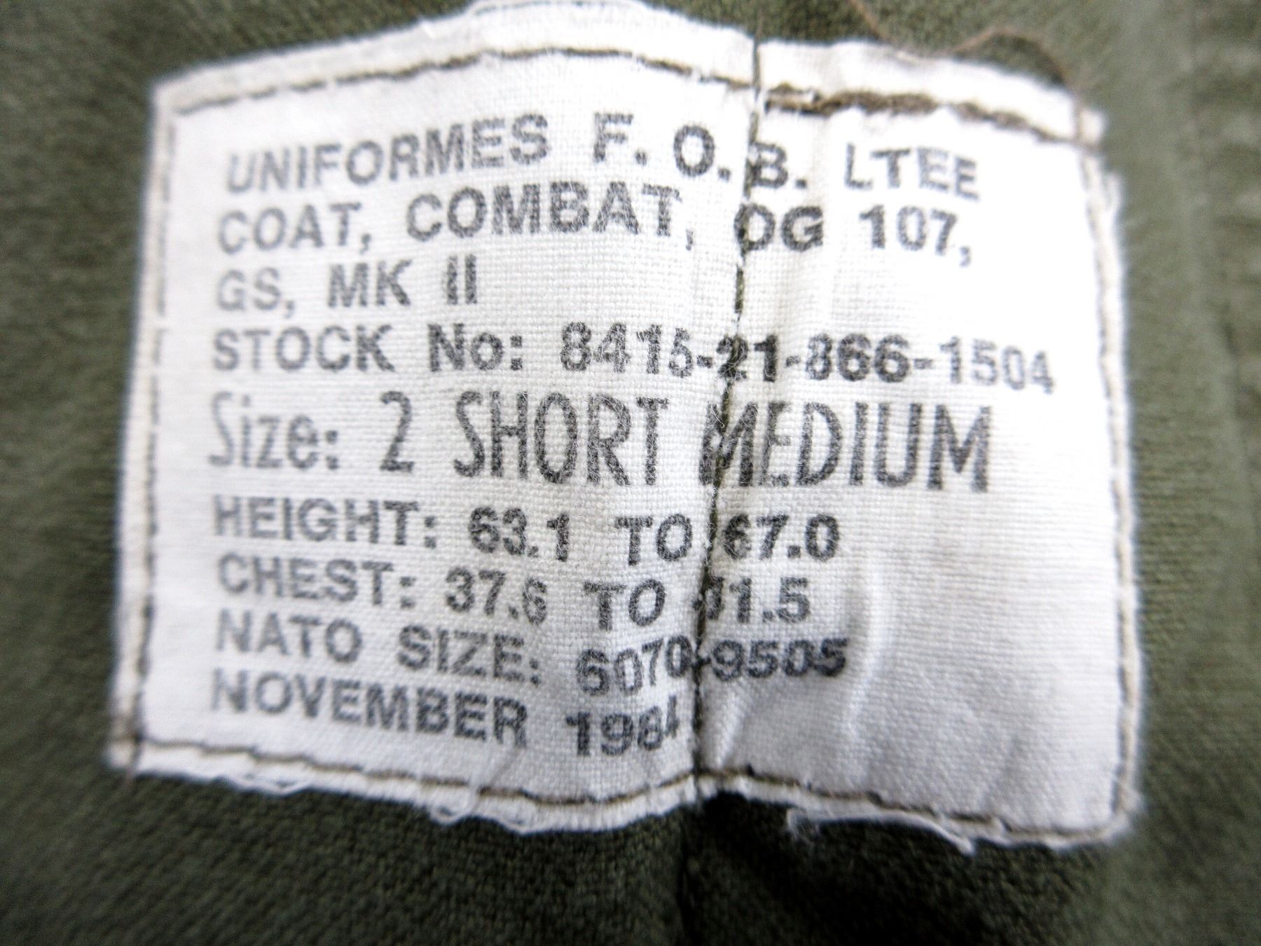 ASSORTED CANADIAN MILITARY COMBAT COATS, ETC. LOT