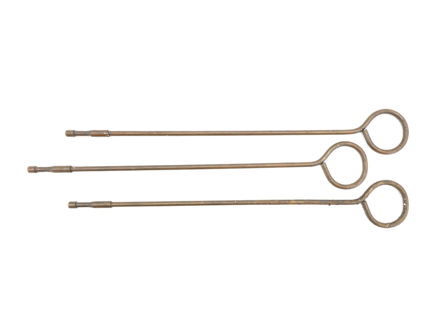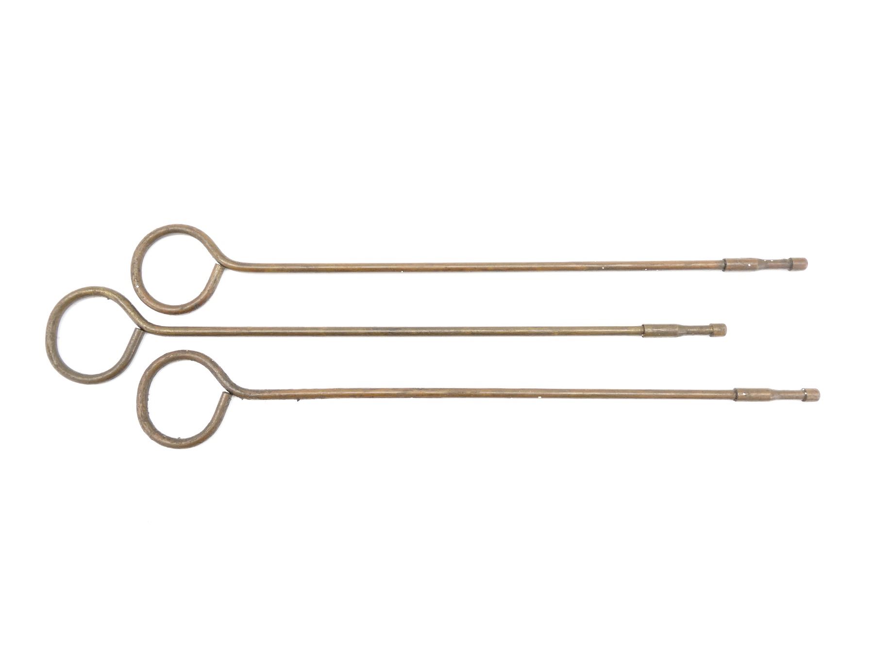 LOT INCLUDES; (3) ALL BRASS CLEANING RODS, NO VISIBLE MARKINGS, OAL APPROX. 16 3/8". SEE PHOTOS.