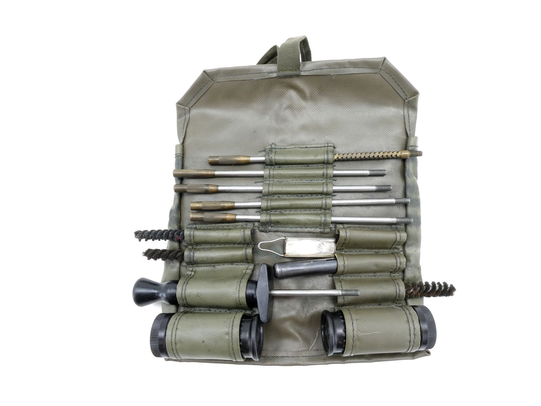 (1) CLEANING KIT FITS SCHMIDT-RUBIN K11 & K31 RIFLES, GREEN NYLON CLEANING KIT COMES WITH RODS, OILERS, BRUSHES, CHAMBER MIRROR, ETC. SEE PHOTOS.
