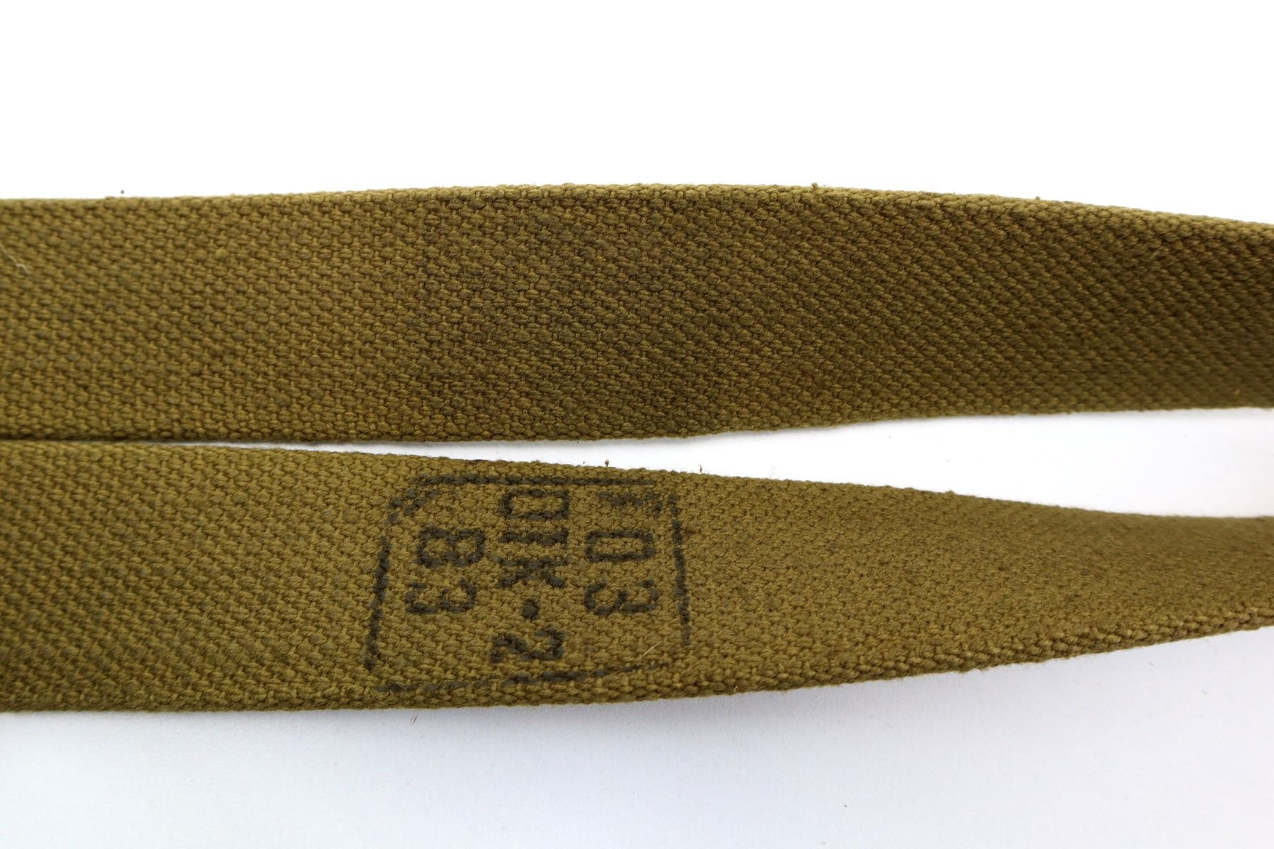 LOT INCLUDES; (1) BROWN LEATHER AMMO POUCH, NO VISIBLE MARKINGS, TWO CANVAS BELT LOOPS, BRASS / METAL FITTINGS, (1) TAN CANVAS SKS SLING, VARIOUS MARKINGS, METAL FITTINGS, OAL APPROX. 37", ADJUSTABLE, (2) METAL OILERS, ONE SINGLE SPOUTED, ONE DOUBLE SPOUTED, VARIOUS MARKINGS, (2) OILER POUCHES, ONE GREEN CANVAS, ONE BROWN LEATHER, NO VISIBLE MARKINGS, (1) SKS CLEANING KIT WITH BRUSH, PIN PUNCH, JAG, ETC. SEE PHOTOS.