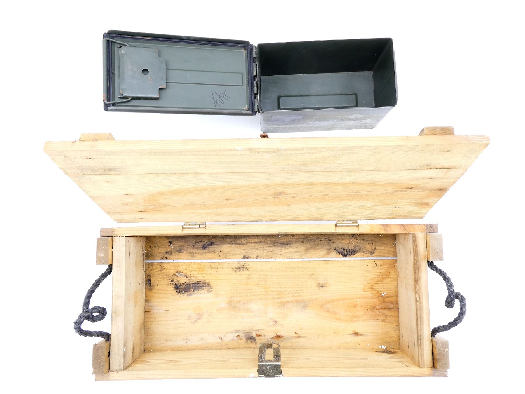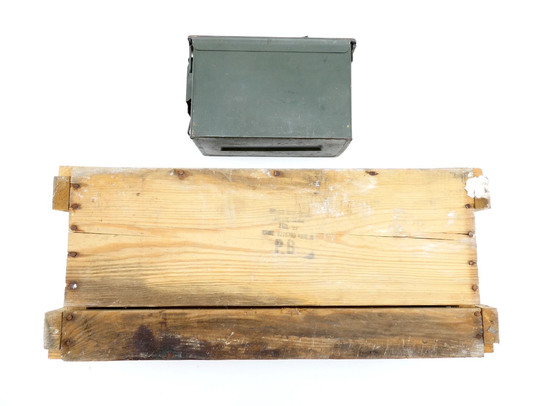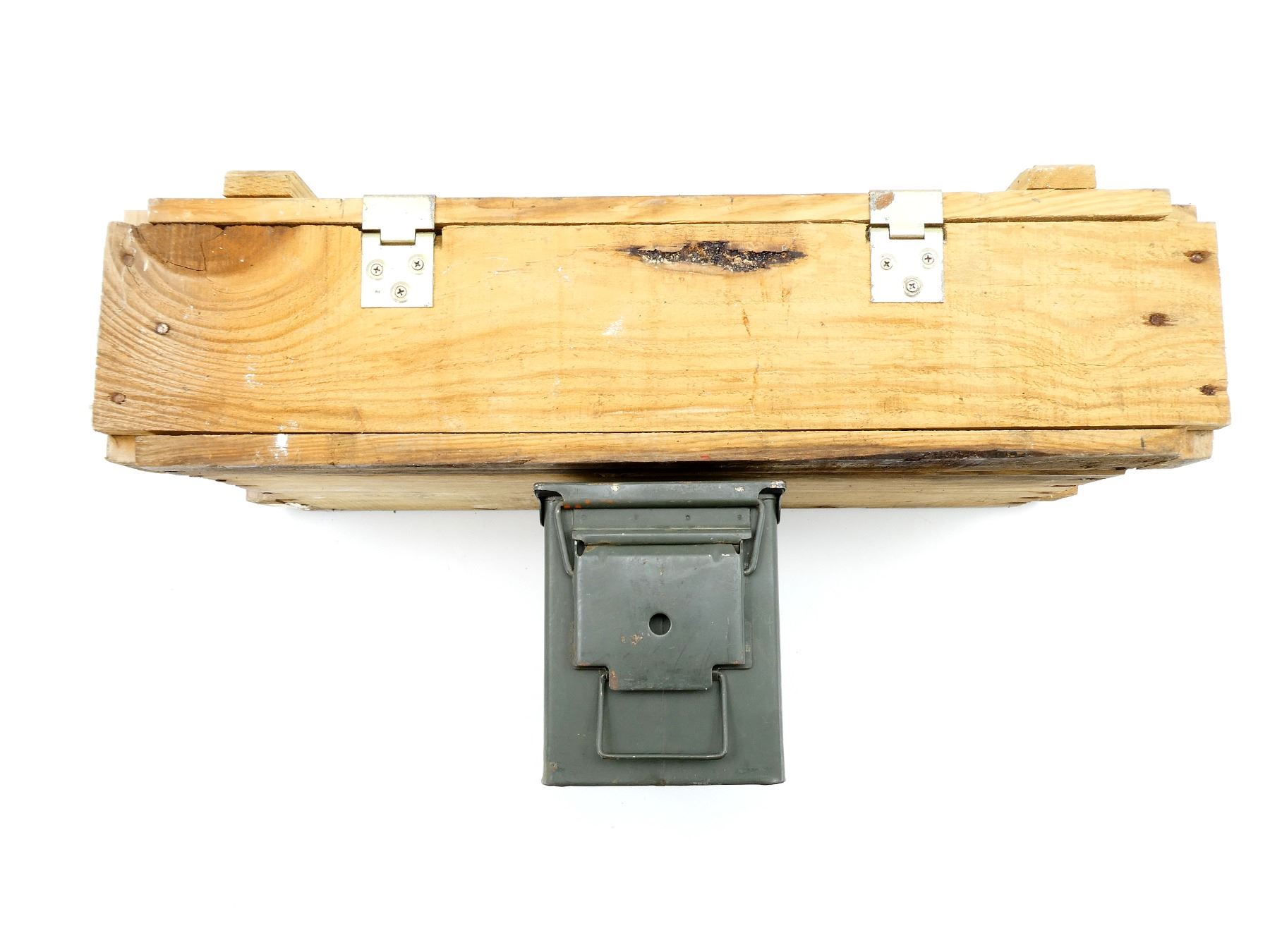 U.S. MILITARY WOODEN AMMO CRATE AND METAL AMMO TIN LOT