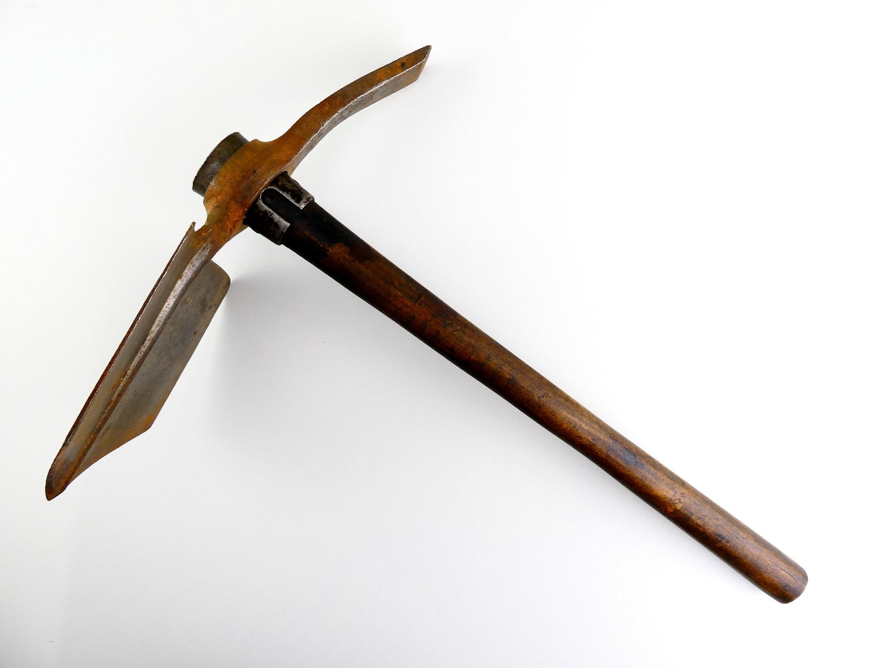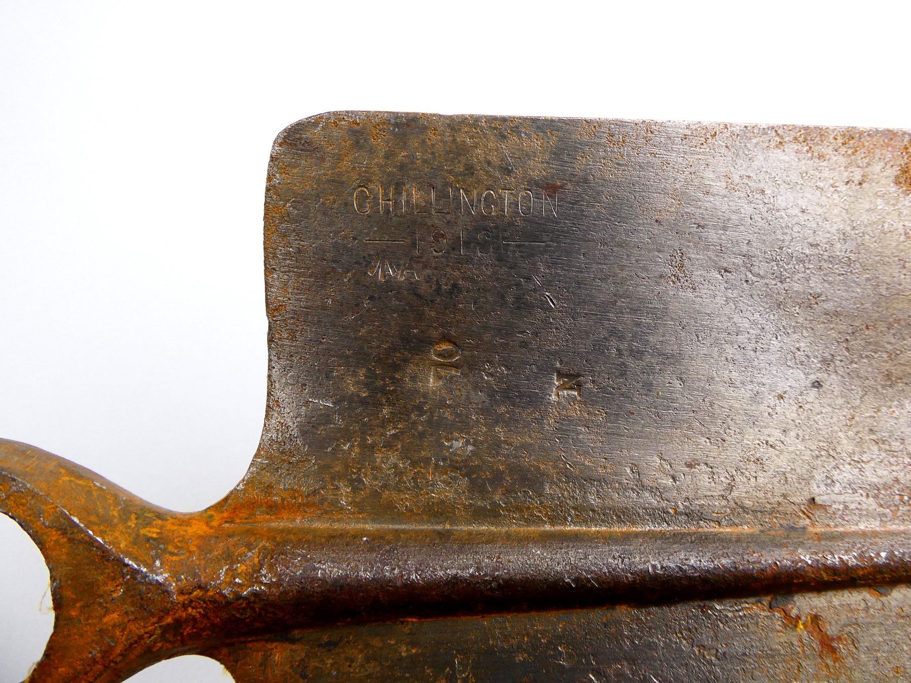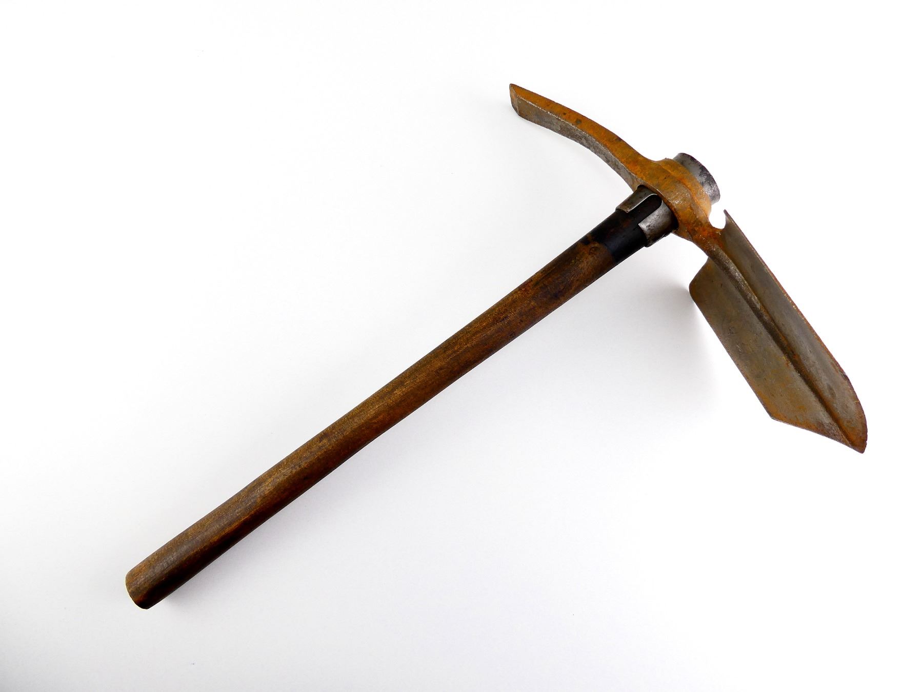 LOT INCLUDES; (1) STEEL TOOL HEAD, SPADE ON ONE SIDE / PICK ON THE OTHER, MARKED: "CHILLINGTON, 1918", BROAD ARROW "A", "70" & "N", APPROX. 5" W, OAL APPROX. 12 1/8" & (1) WOOD HELVE WITH STEEL, HANDLE MARKED WITH C-BROAD ARROW, OAL APPROX. 16 5/8". SEE PHOTOS.