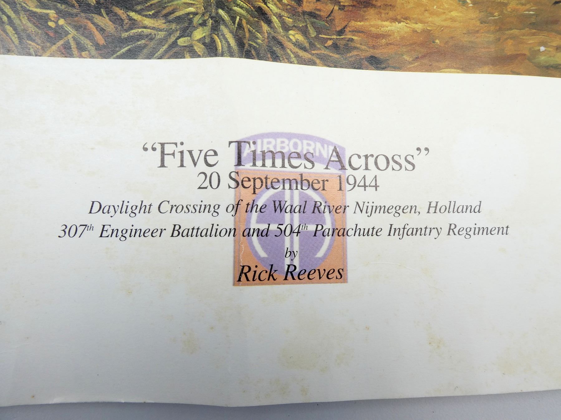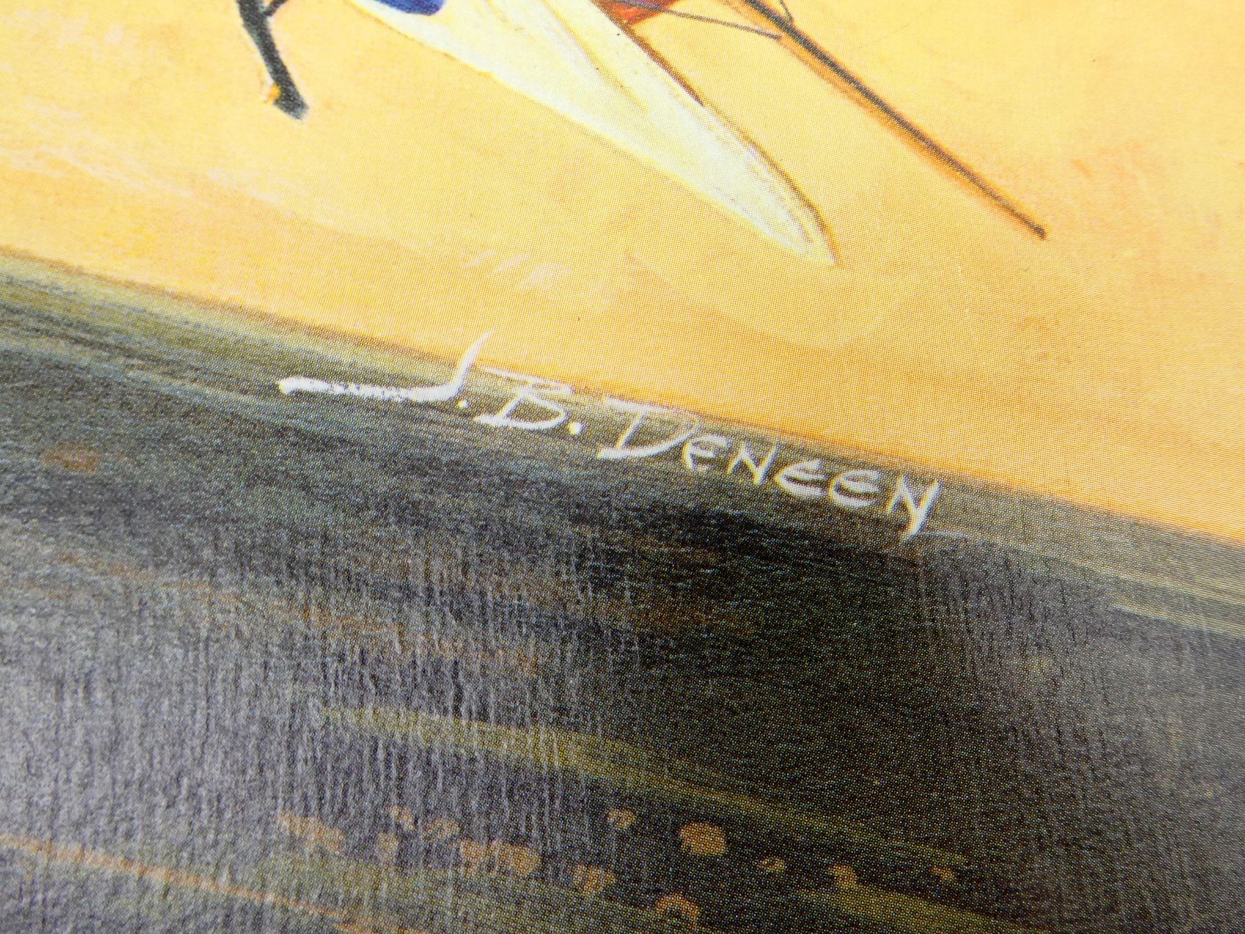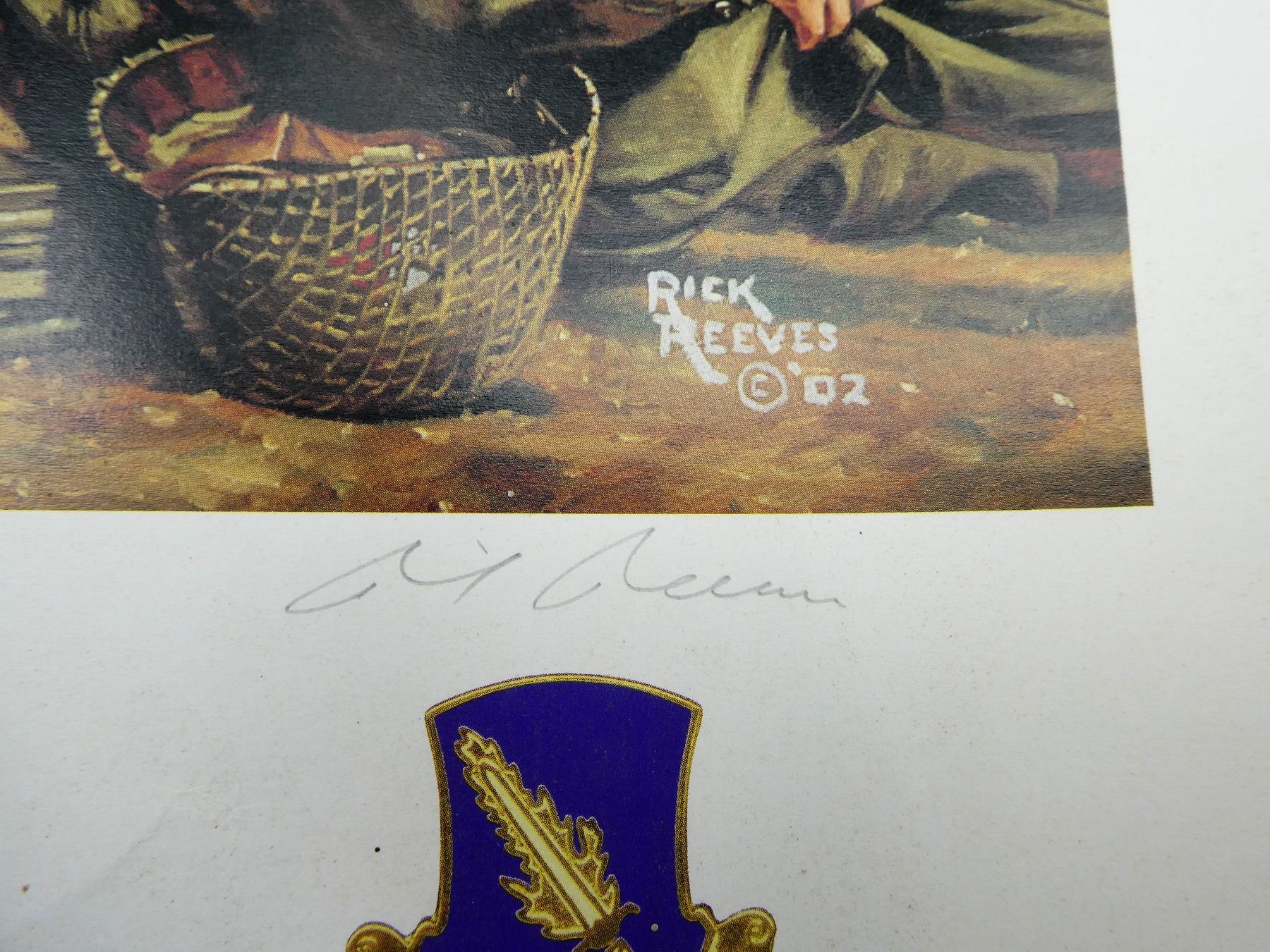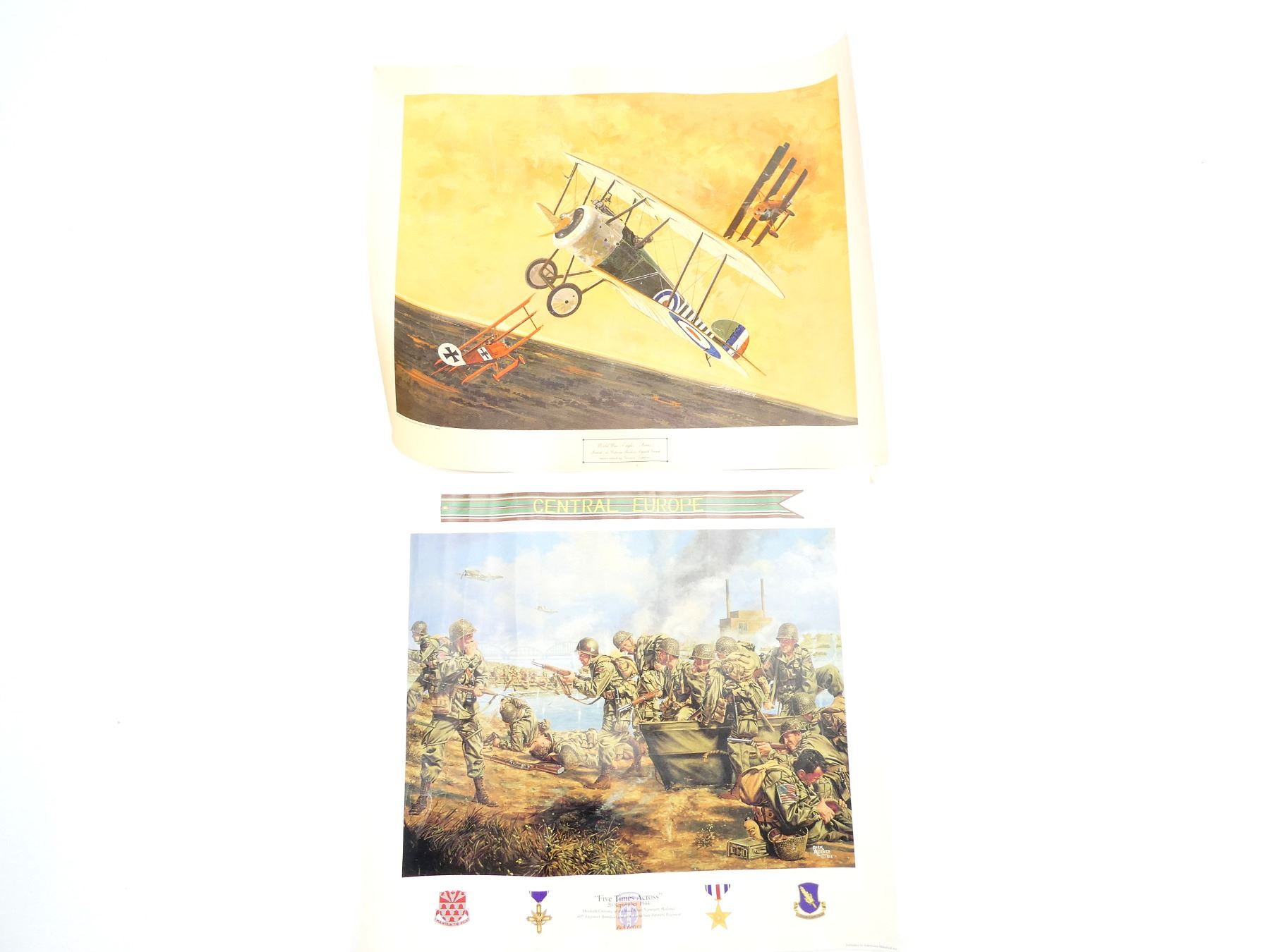 LOT INCLUDES; (1) "FIVE TIMES ACROSS" PRINT BY RICK REEVES, SIGNED BY ARTIST, PRINT NO. 140 / 200, PUBLISHED BY AMERICANA HISTORICAL ART, SHOWS WEAR, STAINING / VARIOUS CREASES / ROLLED UP, PRINT APPROX. 21" X 19" & (1) "WORLD WAR I EAGLES…SERIES I" PRINT BY J.D. DENEEN, PUBLISHED BY ECHELON PUBLISHING CO., INC. 1969, SHOWS WEAR / TEARS ON CORNERS & TOP EDGE, STAINING / VARIOUS CREASES / ROLLED UP, PRINT APPROX. 22 7/8" X 19". SEE PHOTOS.