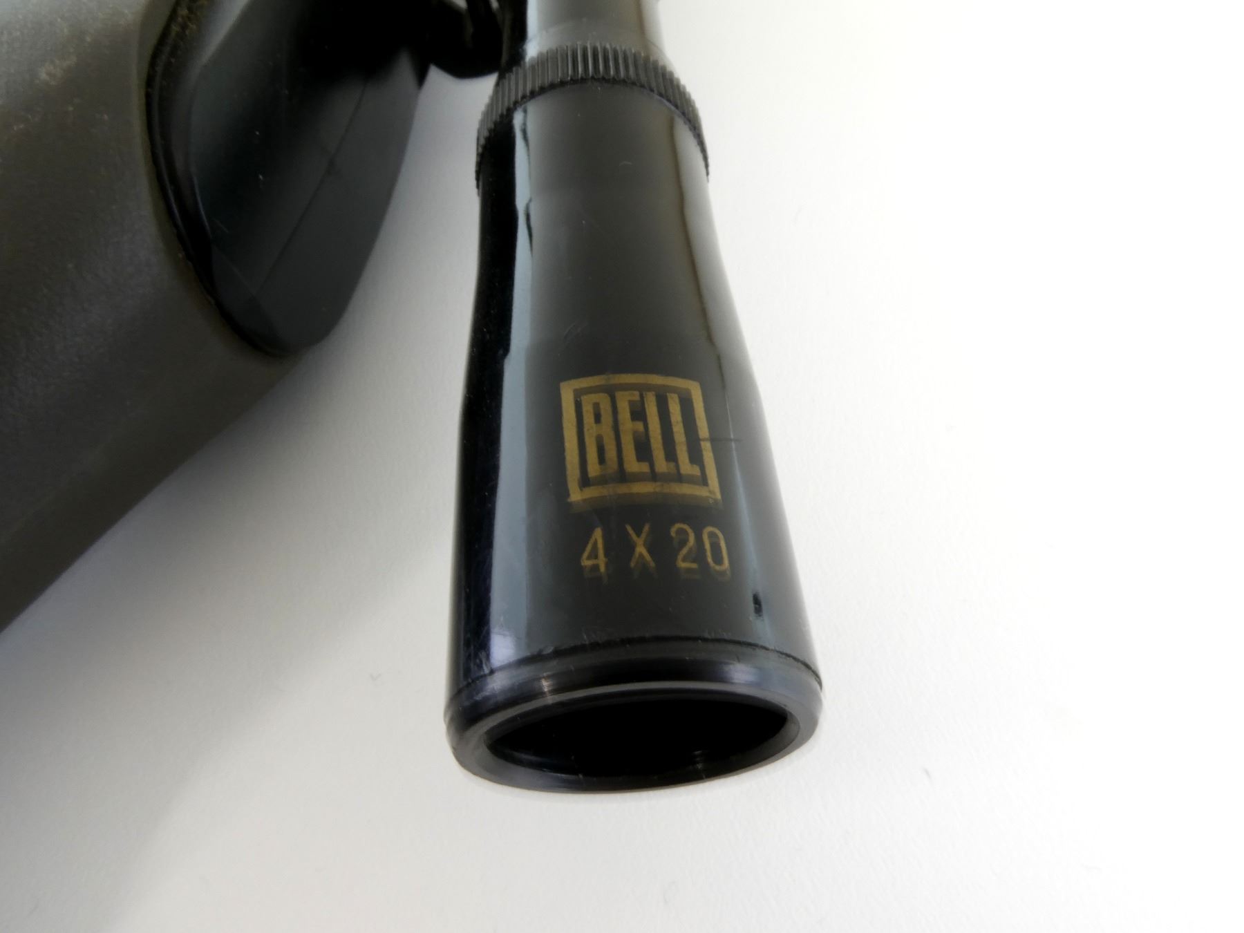 (1) .177 CAL PELLET / 4.5MM BB, CO2 POWERED, 495 FPS, 12 SHOT ROTARY CLIP, STEEL & GREY SYNTHETIC CONSTRUCTION, VARIOUS MARKINGS, NO COCKING ISSUES, NOT FULLY TESTED, WITH BELL 4X20 SCOPE MOUNTED, CLEAR OPTICS, DUPLEX RETICLE, 0.75" TUBE DIAMETER, SHOWS WEAR / TEAR. SEE PHOTOS.