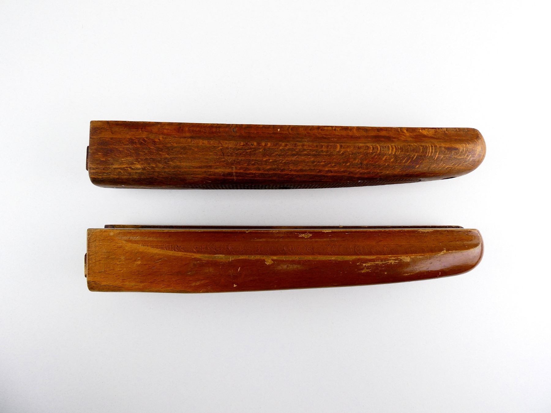 LOT INCLUDES; (2) WOODEN FORENDS, CHECKERED, MAY HAVE SMALL CRACKS & CHIPS, OAL APPROX. 9.5". MAY REQUIRE FITTING. SEE PHOTOS.