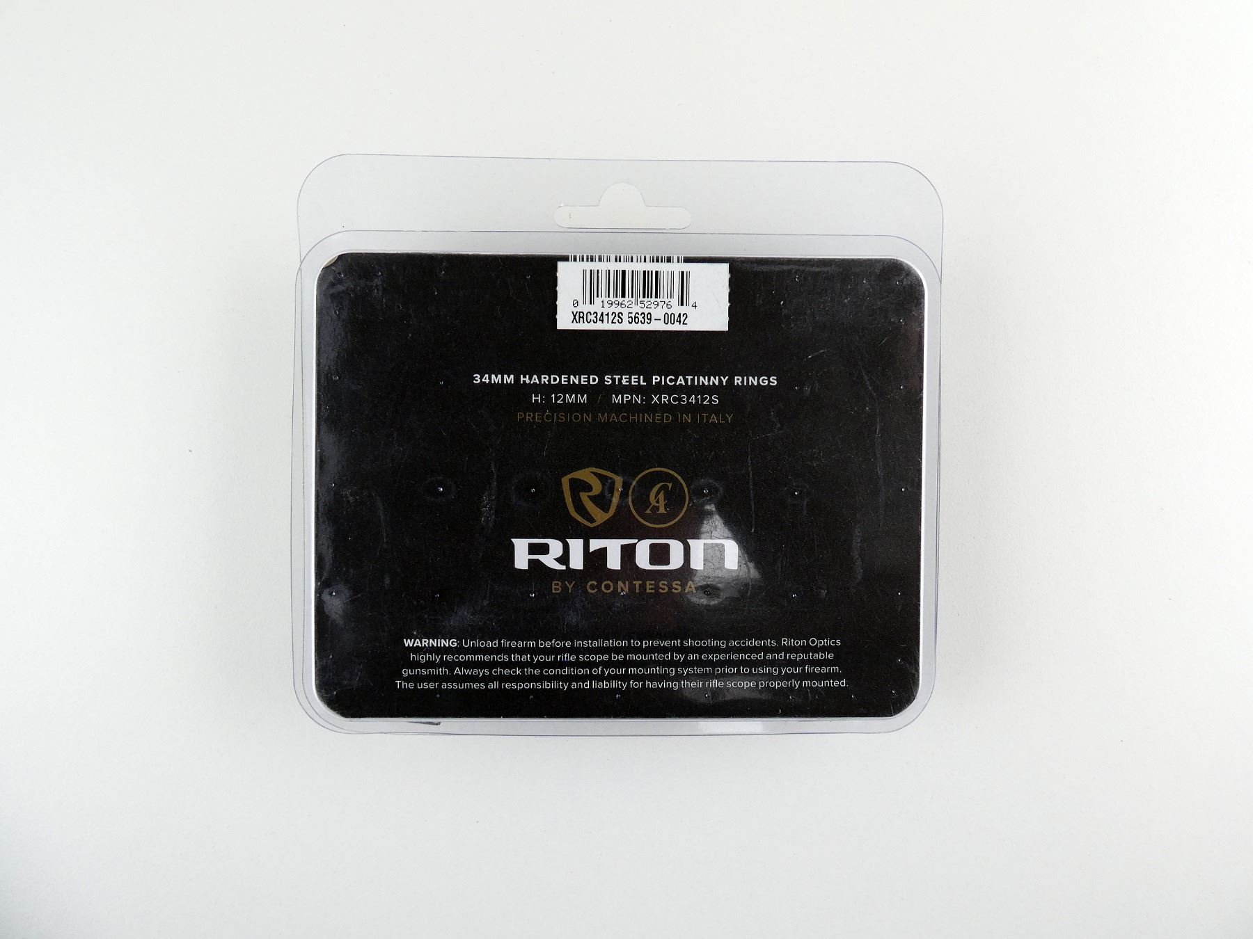 LOT INCLUDES; (1) PAIR OF 34MM PICATINNY RINGS, MATTE BLACK HARDENED STEEL, 12MM HEIGHT, PART #: XRC3412S, NOS IN ORIGINAL PACKAGING. MAY REQUIRE FITTING. SEE PHOTOS.