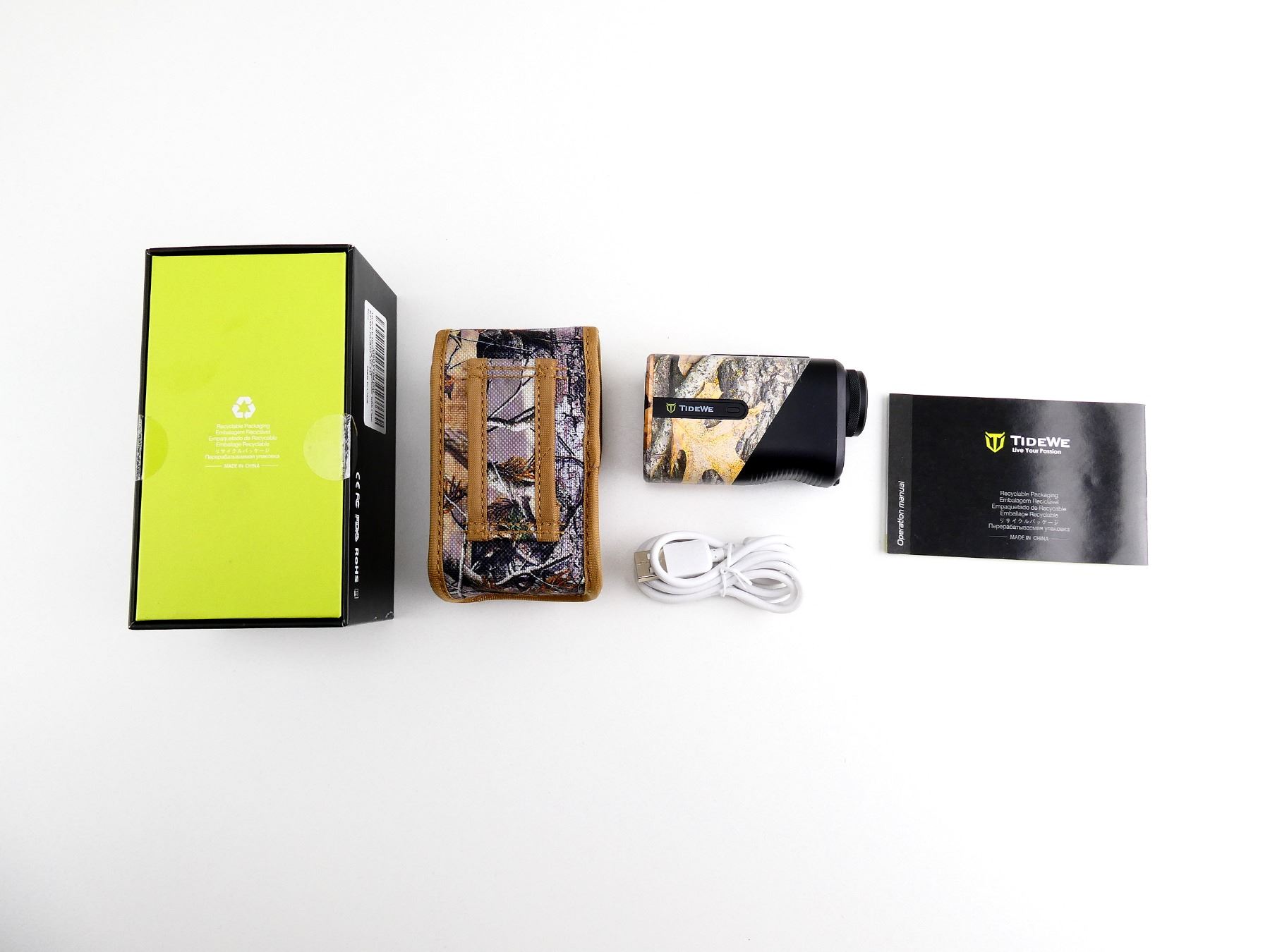 (1) CLEAR OPTICS, WORKING MAGNIFICATION RING, MARKED: "TIDEWE", ETC., WITH INSTRUCTIONS & CAMO CARRYING CASE, SHOWS LIGHT WEAR & TEAR / USE MARKS, APPEARS NOS IN ORIGINAL PACKAGING. SEE PHOTOS.