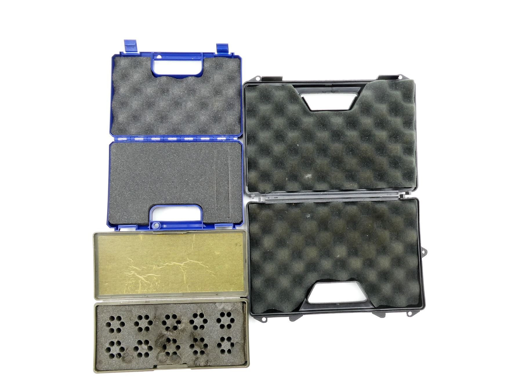 LOT INCLUDES; (1) BROWN LEATHER BELT WITH ATTACHMENTS, (1) AMMUNITION BELT, (1) HUNTING SAFETY VEST, SHOULDER LENGTH APPROX. 18", (2) HANDGUN FOAM CASES, ONE BLACK APPROX. 12" X 7.5" X 2" & ONE BLUE APPROX. 8.5" X 5.5" X 1.75" & (1) SPEED LOADER HOLDER, APPROX. 10" X 4" X 1.5". SEE PHOTOS.