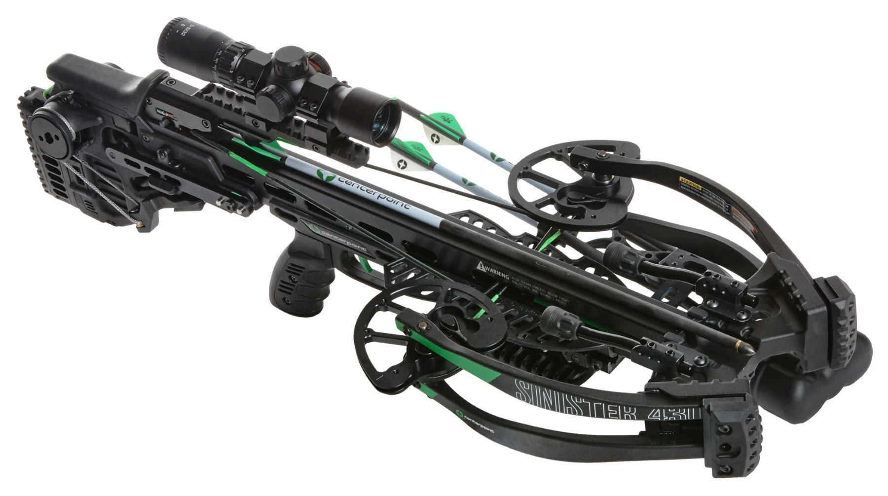 Features never seen before from CenterPoint include a fully integrated silent cocking system with an auto retracting cocking sled and a 1.5-5x32 mm illuminated scope.