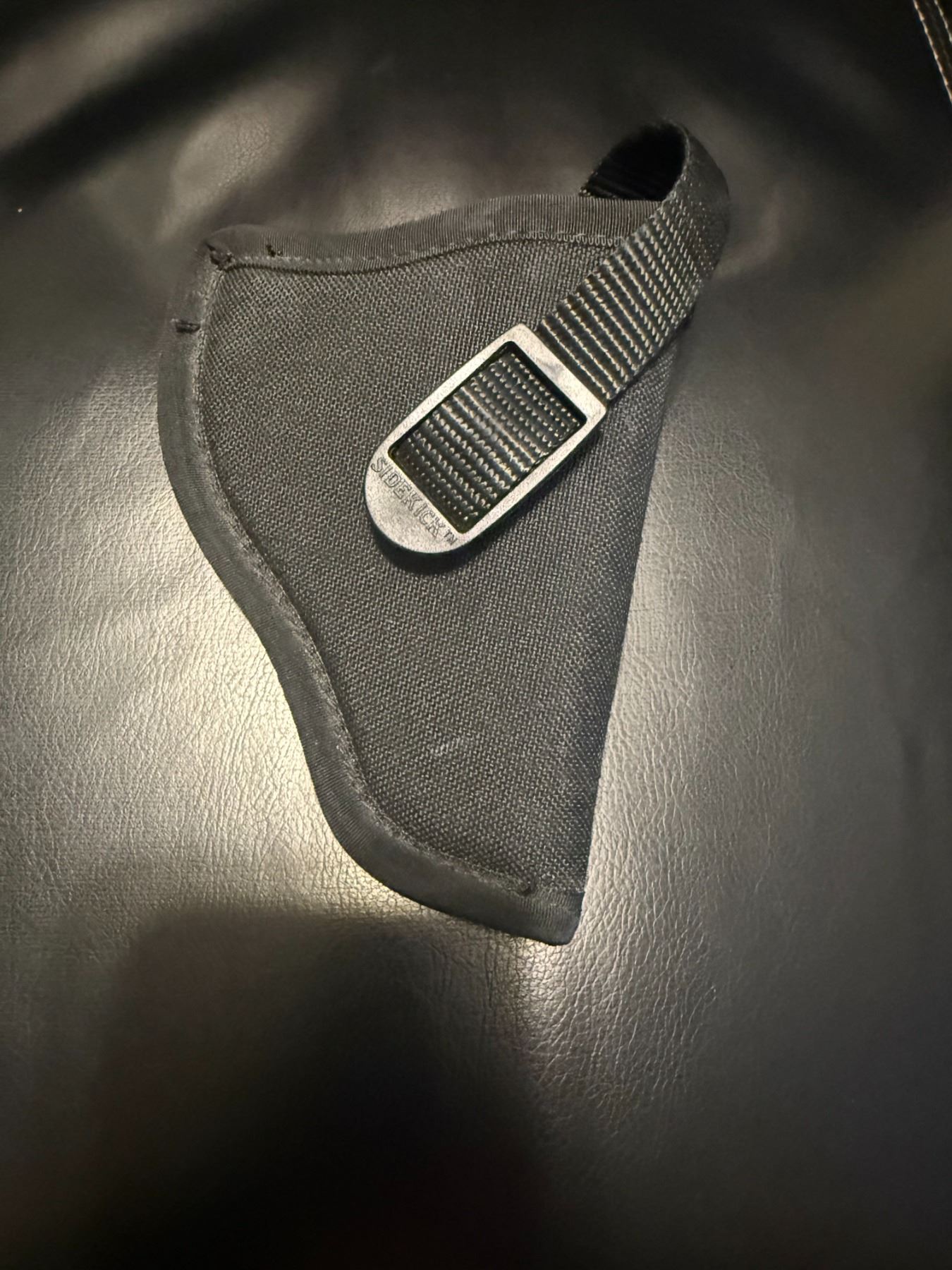 Black Heavy-duty nylon with belt loop attachment with SIDEKICK-branded buckle. Comfortable for daily use, range use, or as a spare holster.