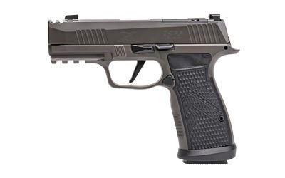 Sig Sauer, P365 AXG Legion, Striker Fired, Semi-automatic, Metal Frame Pistol, Sub-Compact, 9MM, 3.1" Barrel, Cerakote Finish, Legion Gray, G10 Grips, XRAY3 Day/Night Sights, Optic Ready, Compensator, 17 Rounds, 3 Magazines