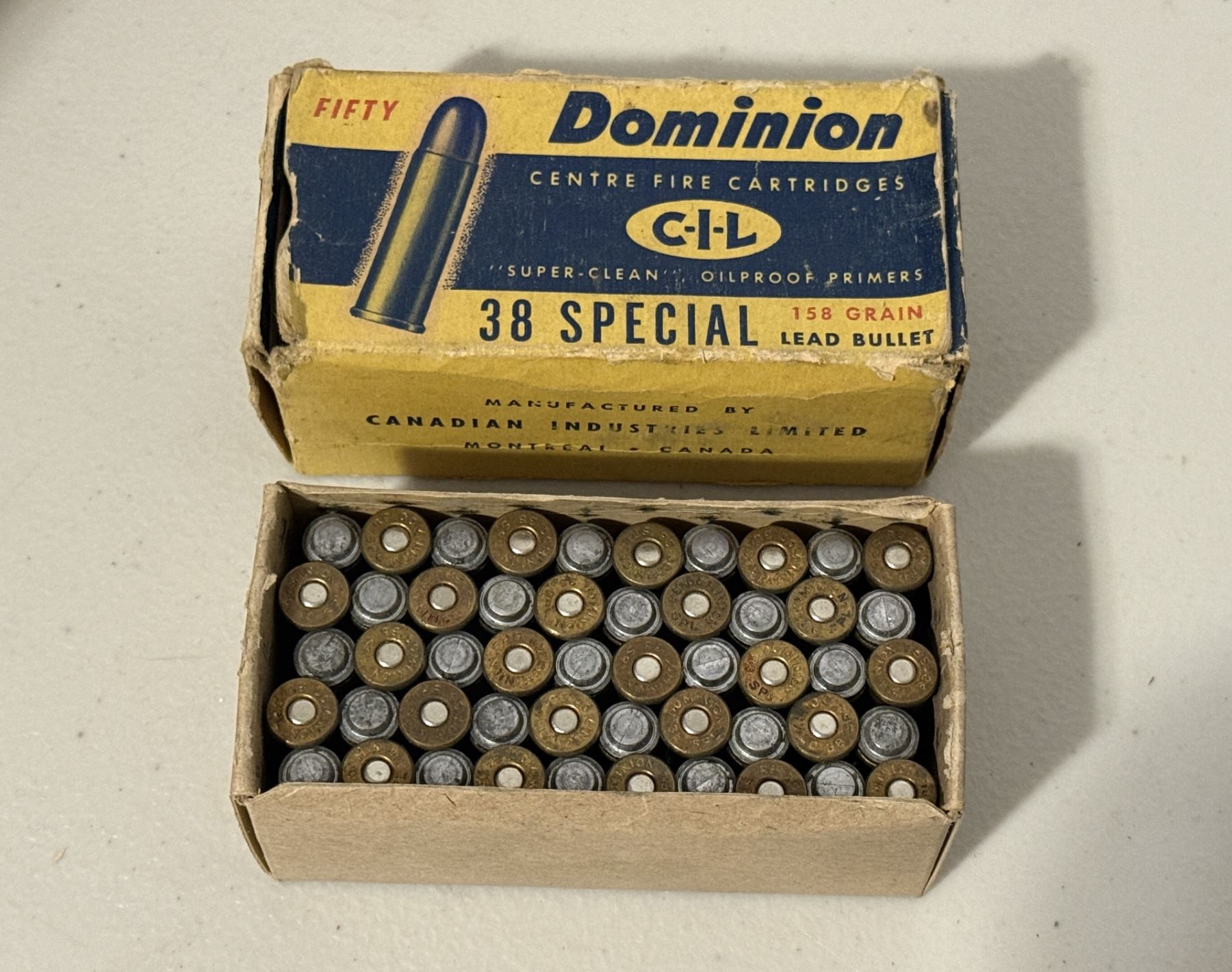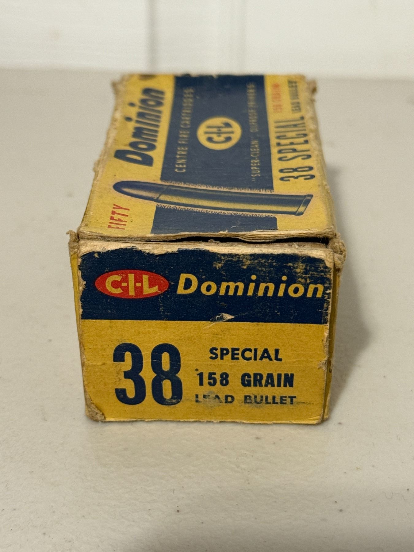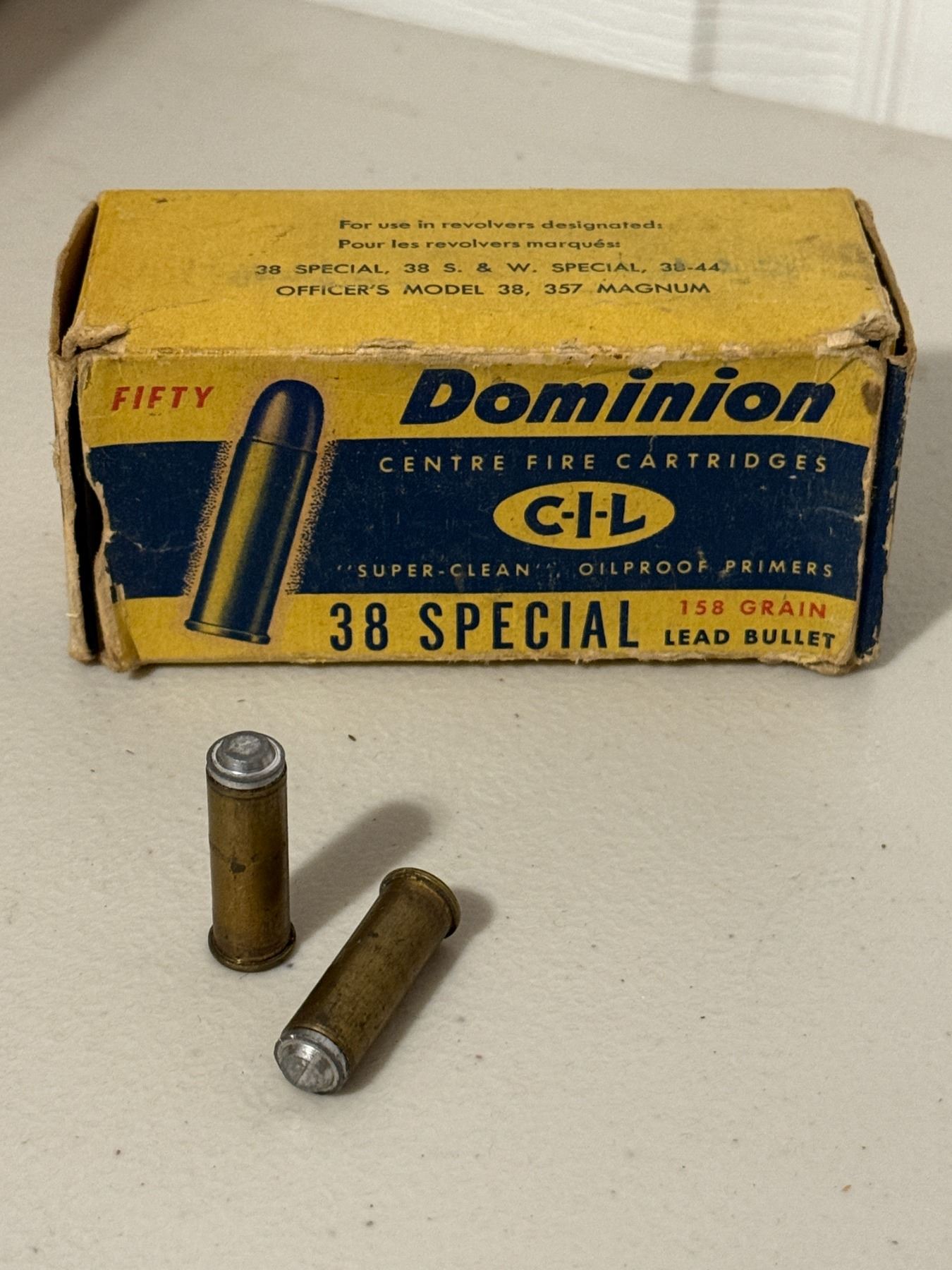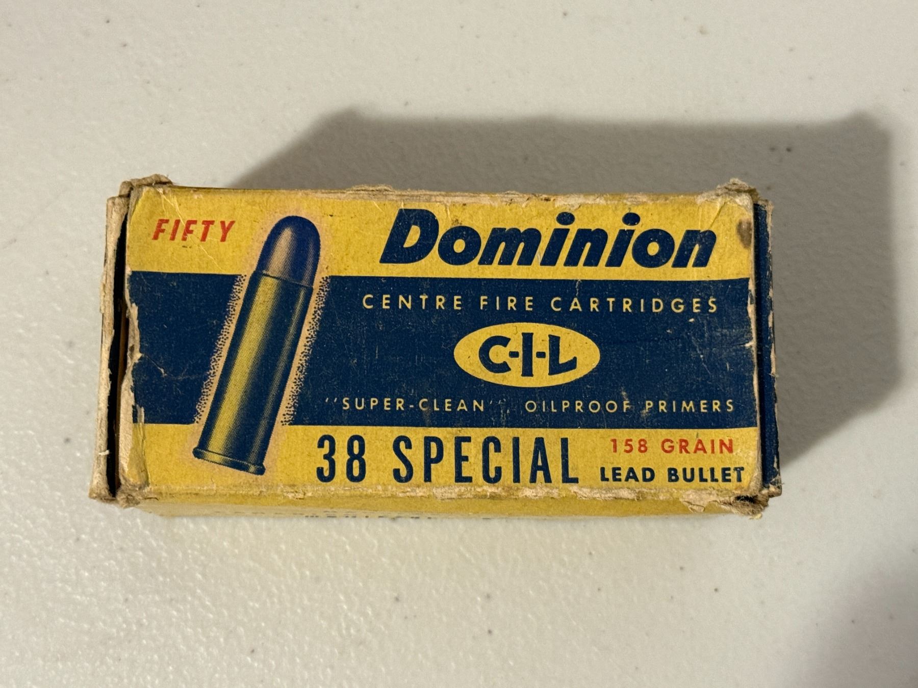 Collector's Box of Dominion 38 Special 158 Grain Lead Bullets. Full box of 50.