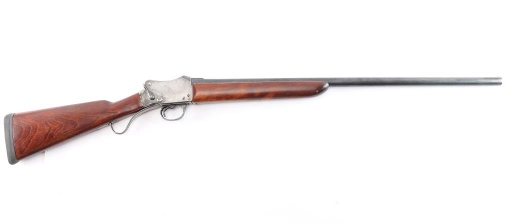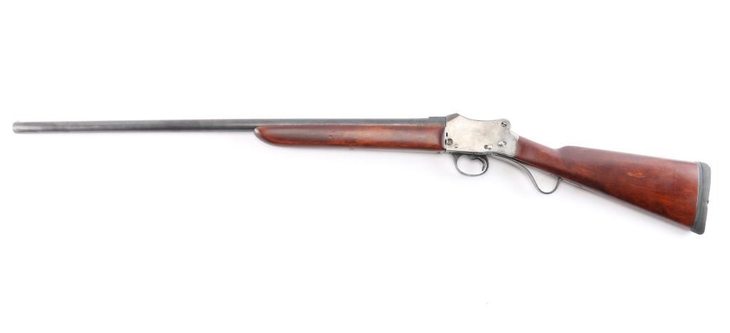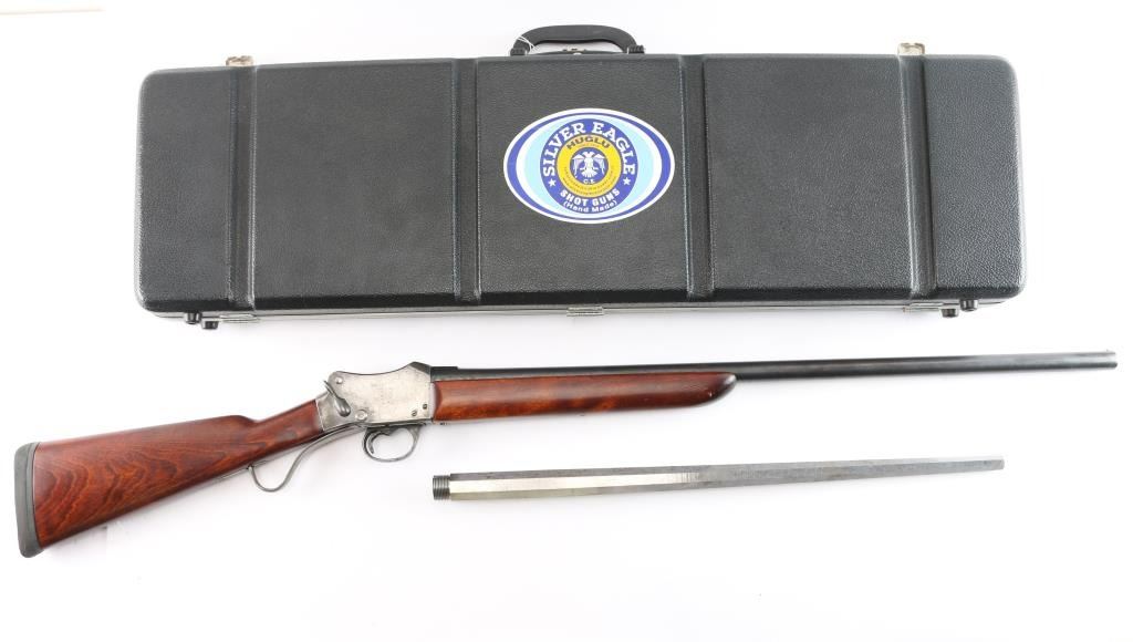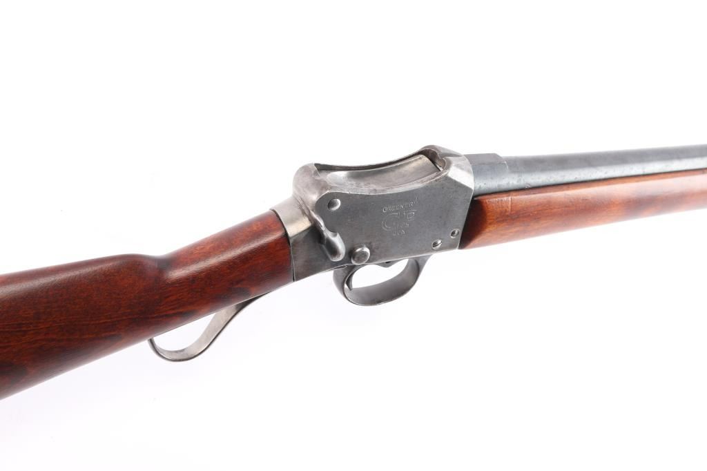 SN: 4705. Combination gun with rifle barrel. British proof marked. Left side of frame is stamped "WW GREENER MAKER BIRMINGHAM ENGLAND". Right side of stock is stamped "GREENERS GP GUN". The Greener firm made this sporting single shot shotgun built on the Martini falling block frame and added walnut smooth straight grip buttstock and forend, KICK-EEZ rubber recoil pad installed. Features 30" blued round barrel, brass sighting bead, 2 3/4' chamber, detachable Cyl choke installed, single extractor. Bore is very good/bright, action works well, wood is very good/sound, barrel is mostly blued with muzzle wear, scattered brown patina and the action is in the white, appears to have been cleaned. Comes with a foam lined hard case with two barrel extensions, two choke tubes, modified and Imp. Cyl. and a 23 1/4" stainless steel, tapered, octagonal rifled barrel chambered in 7.62x54R. No provisions for sights. LOP-15".