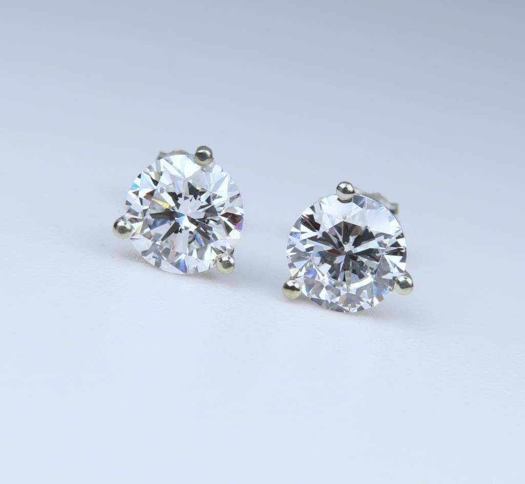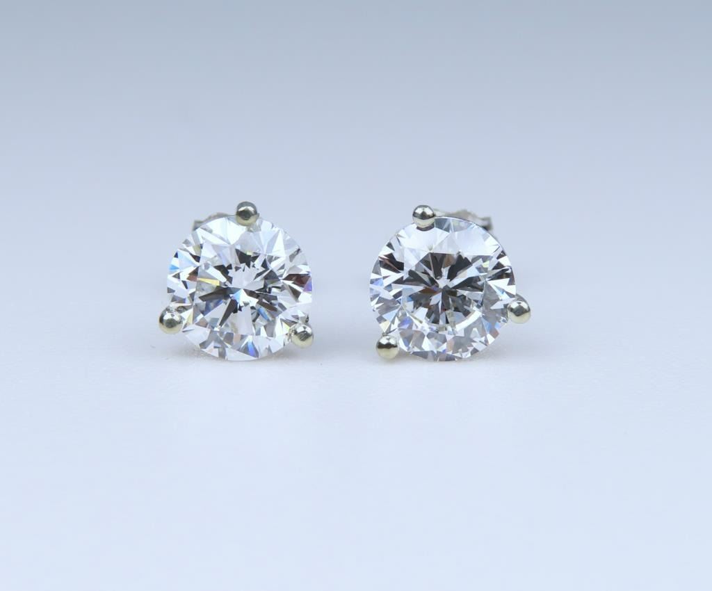 Featuring 2 round “IDEAL” cut Diamonds weighing 2.10 carats with F-G colors and VS clarity set in 14 karat white gold Martini style stud settings. (Compared to Natural Earth Grown Diamonds = $8,000-$10,000.)