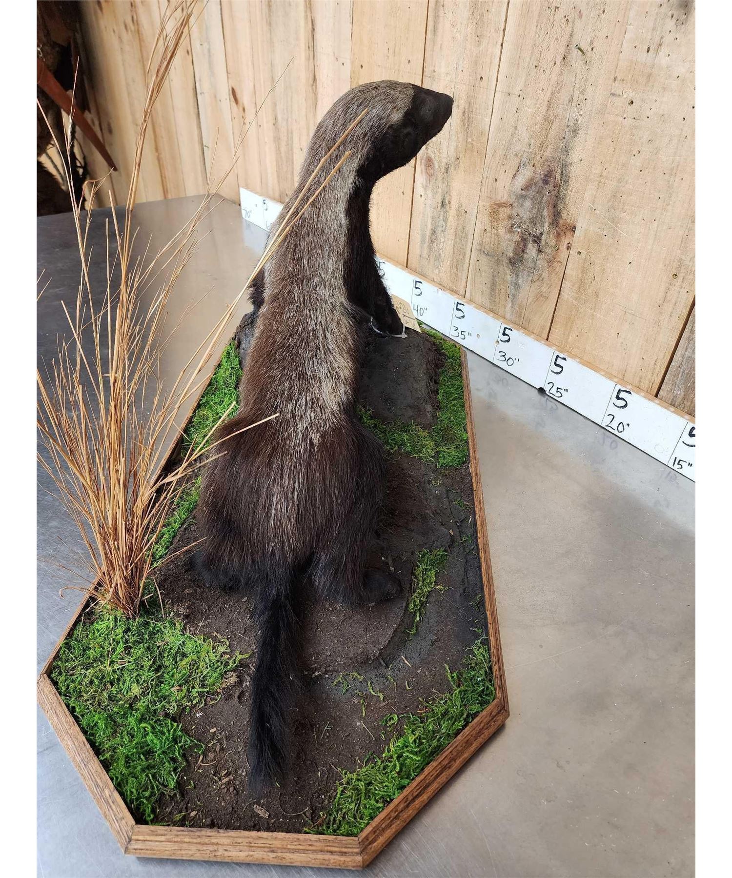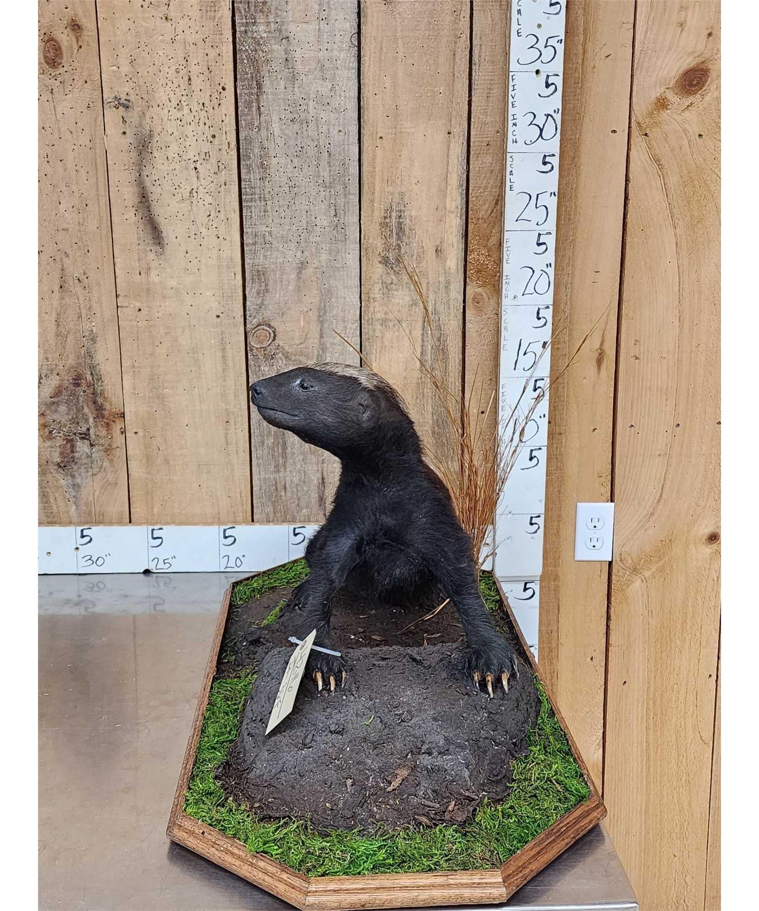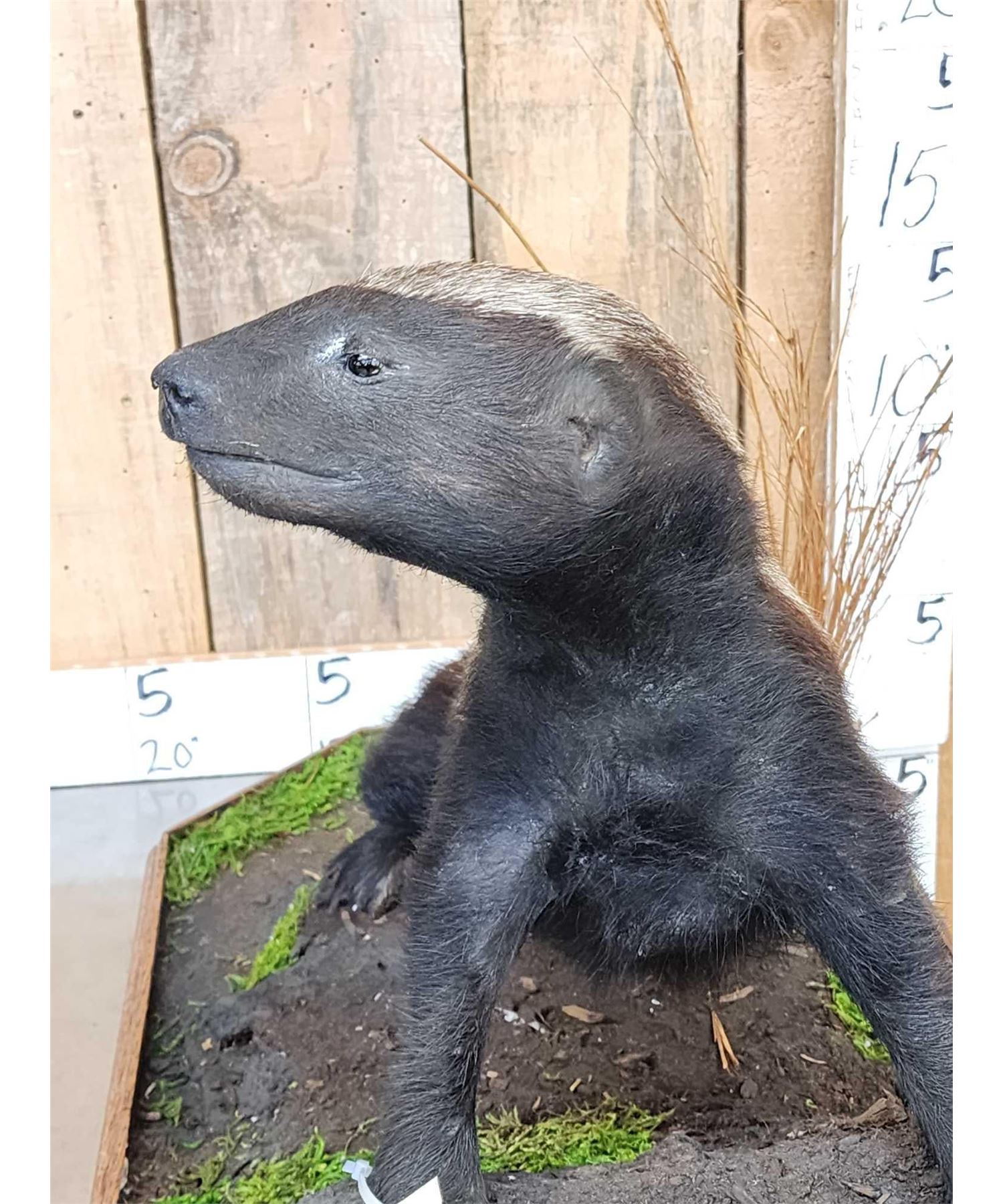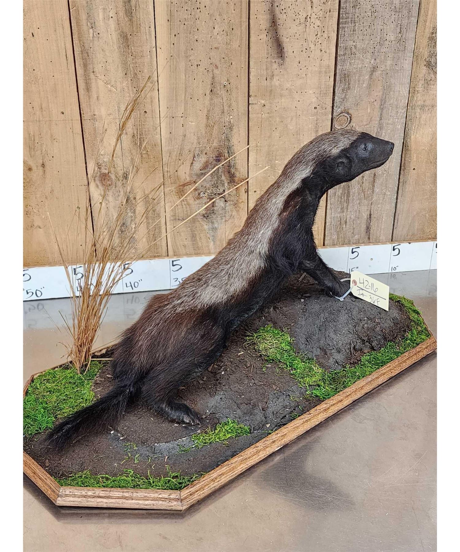 42.16 VERY hard to find mount Nicely done mount on light weight habitat base NOTE : We will be selling the skull from this Honey Badger in the very next lot