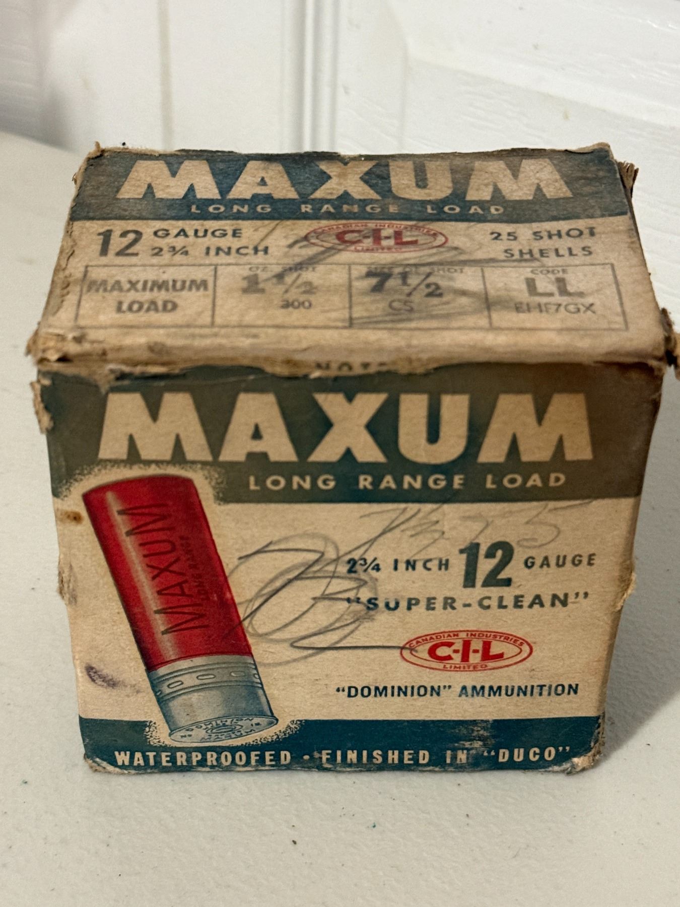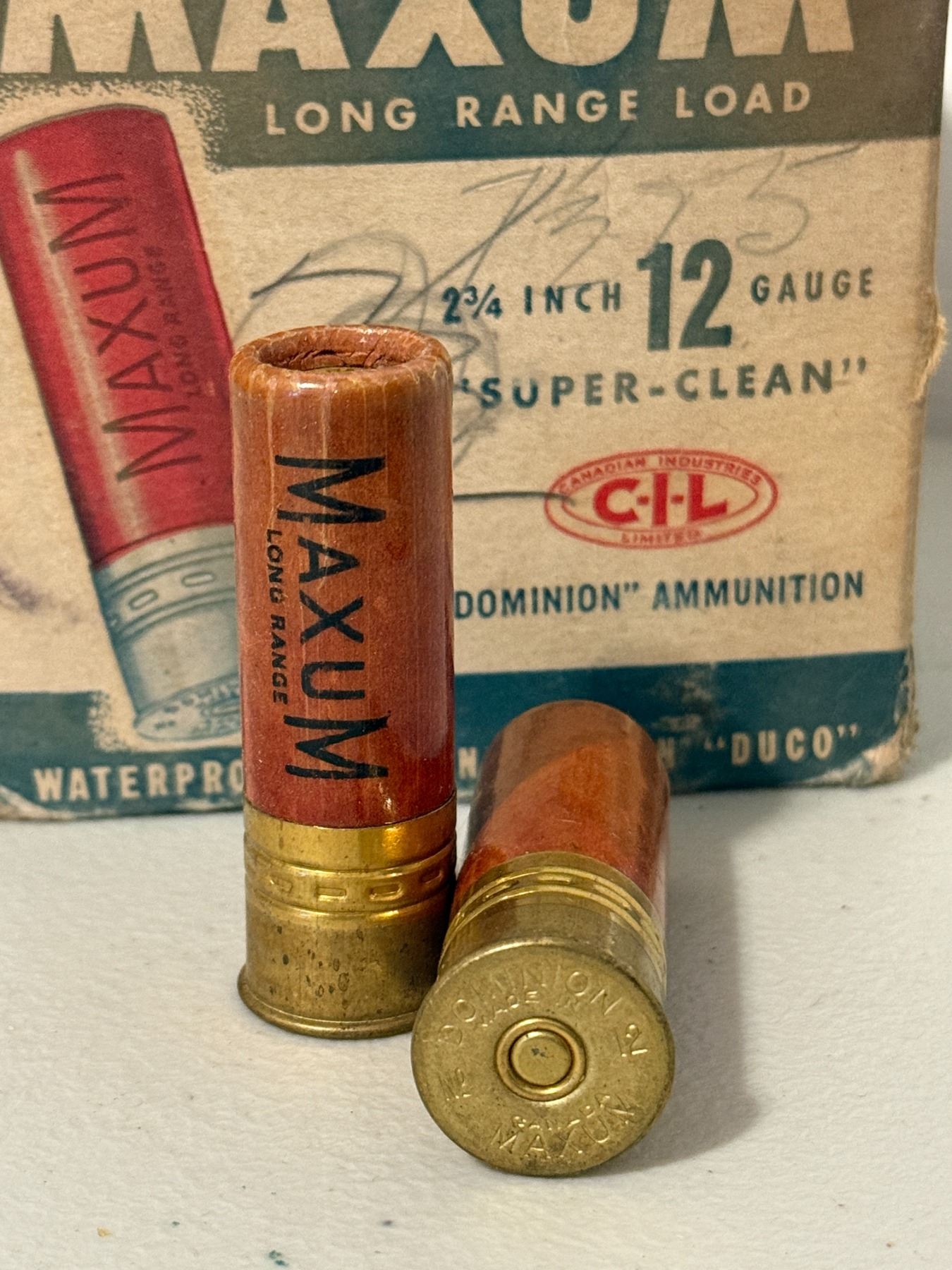 12 GA 2¾″ CIL Maxum Long Range Load in Collector’s Box. Full box.