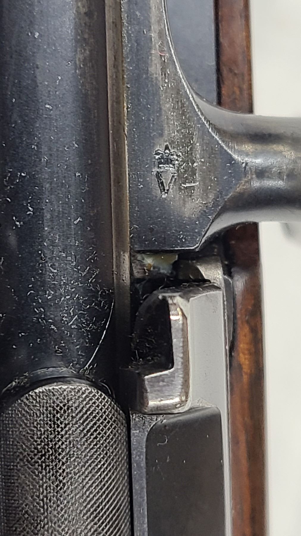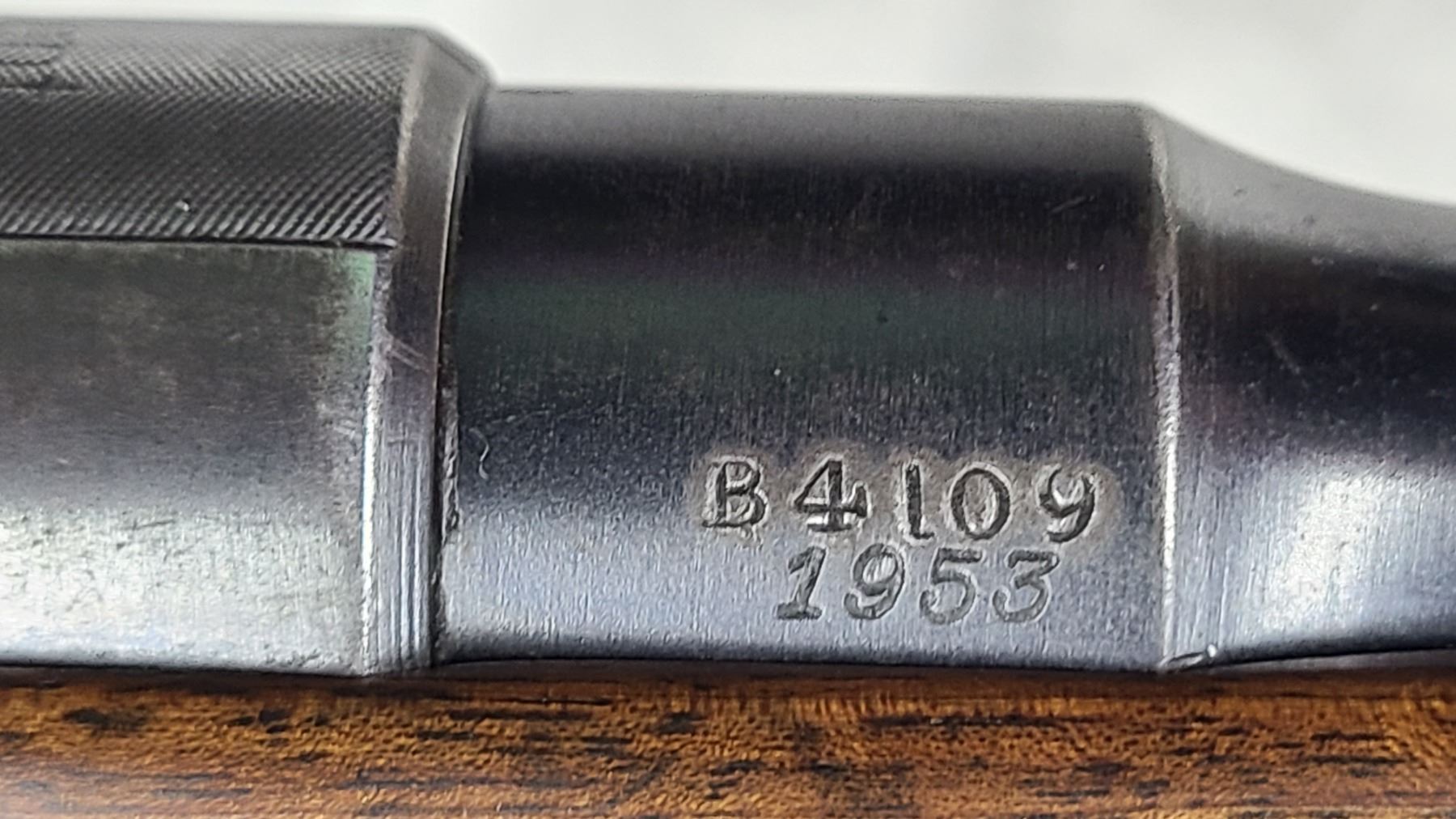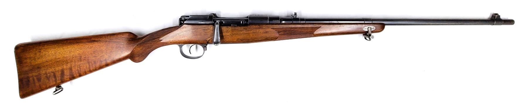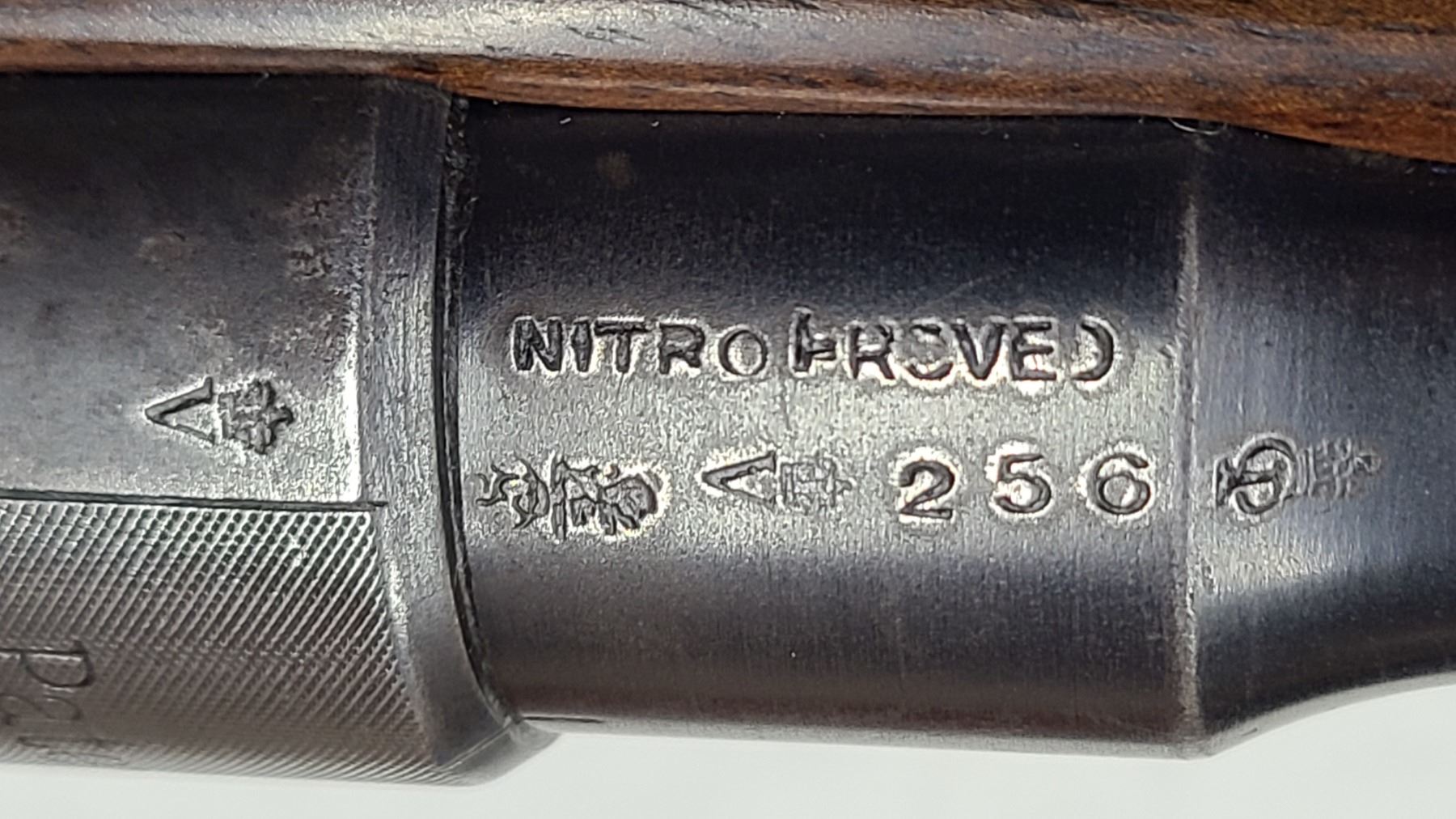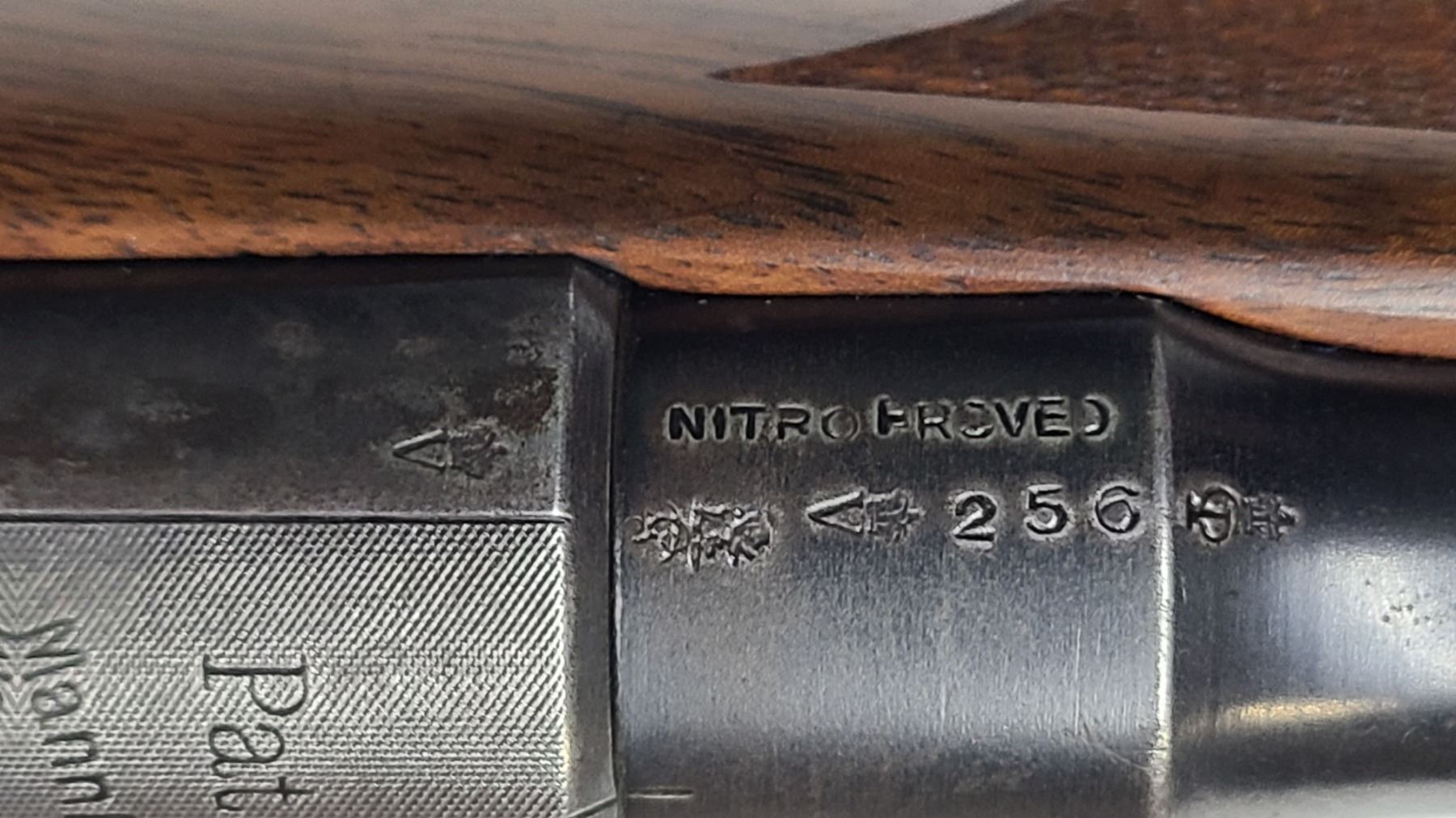 This model is fitted with a 22.5 inch barrel equipped with a two leaf wide V express rear sight regulated on the traditional German front sight. Serial numbers match on Bolt & Receiver.