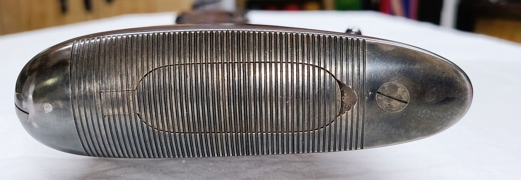 This butt plate has a trap door that accesses 3 small compartments - suitable for cleaning rods or