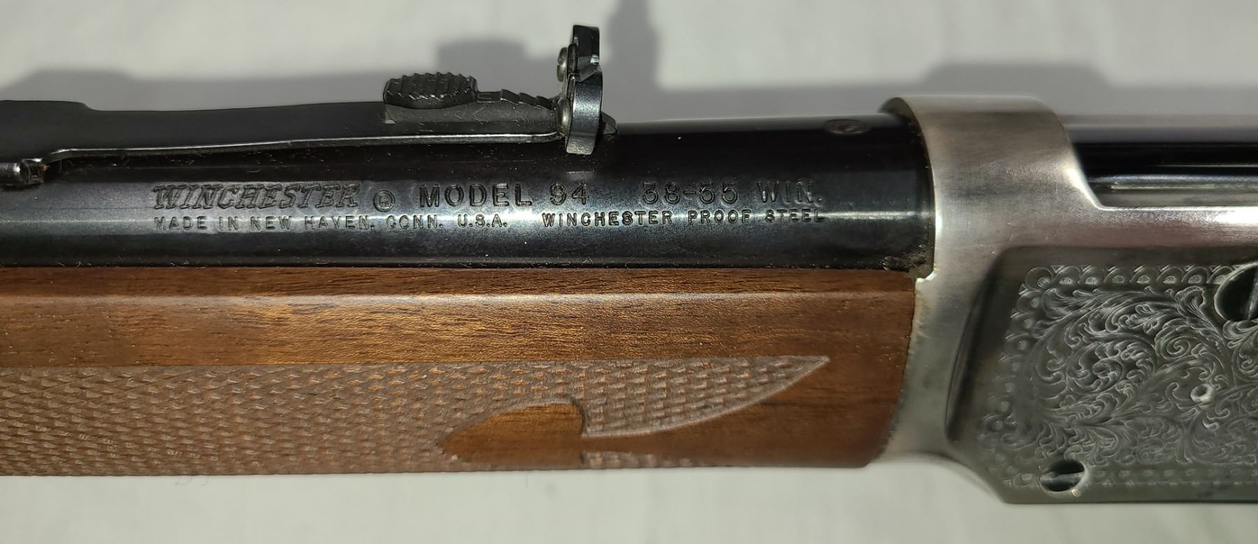 in .38-55 Win. This rifle, featuring a classic 20 inch barrel, is a stunning example of craftsmanship