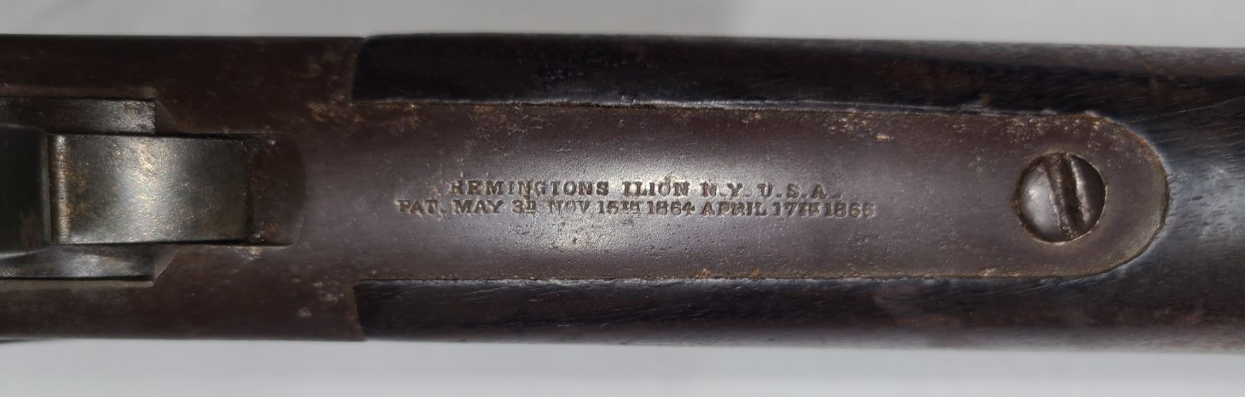 The only markings are on upper tang - Remington Ilon NY USA Pat May 3rd Nov 15th 1864