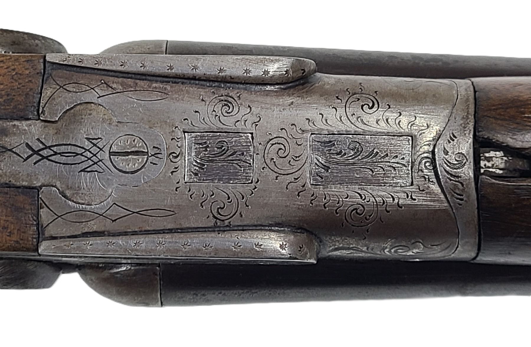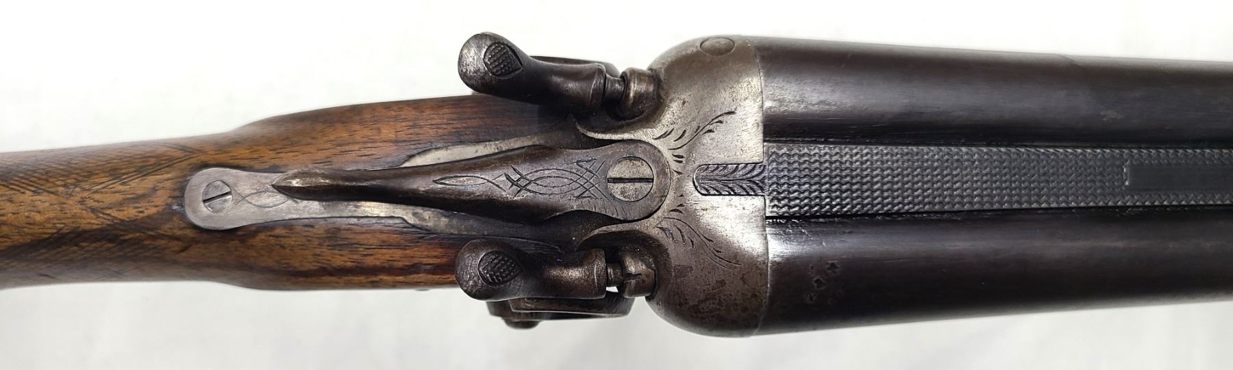Barrels are 30 inches long and appear to be steel.with good matted rib abd brass bead at front.