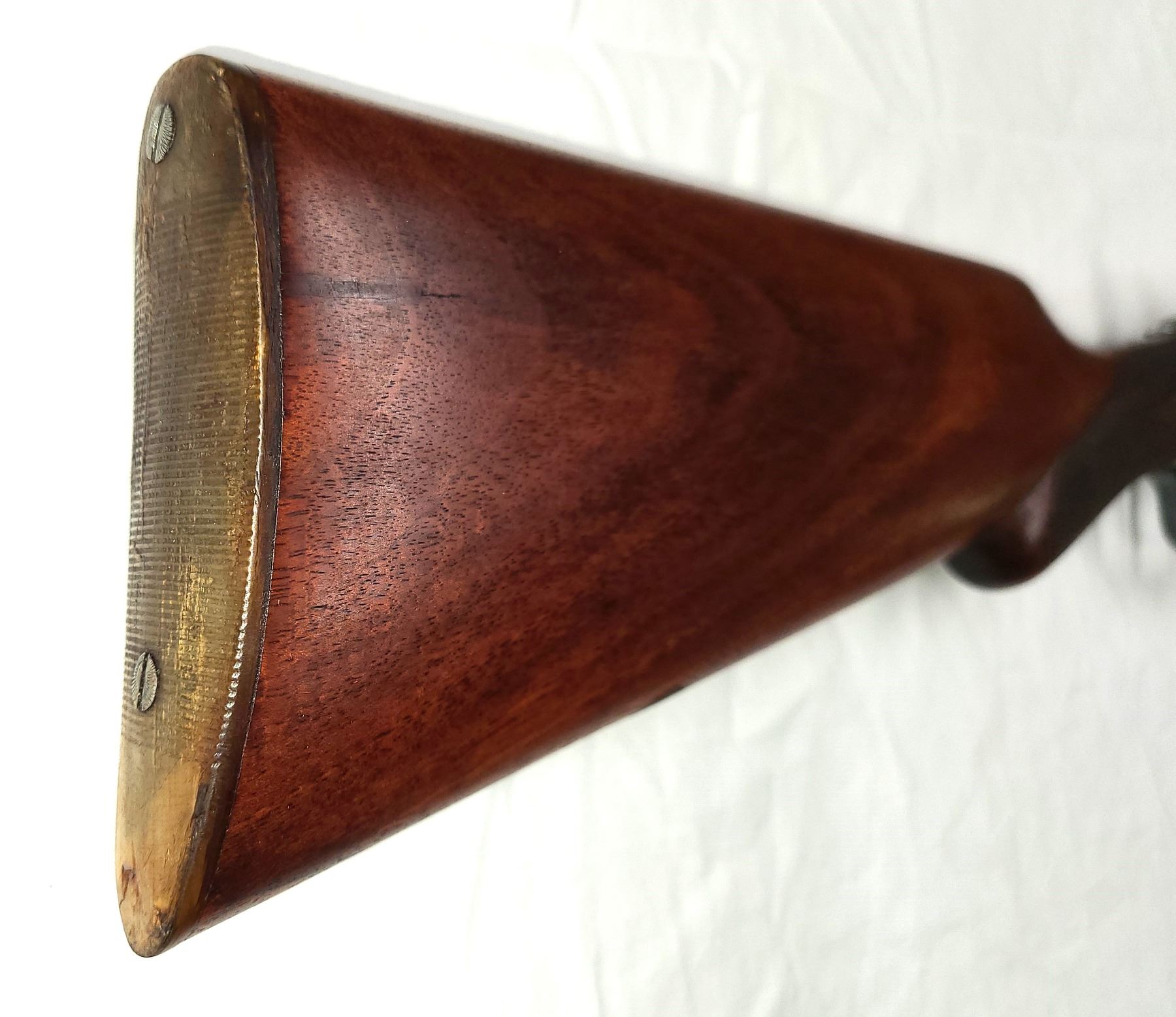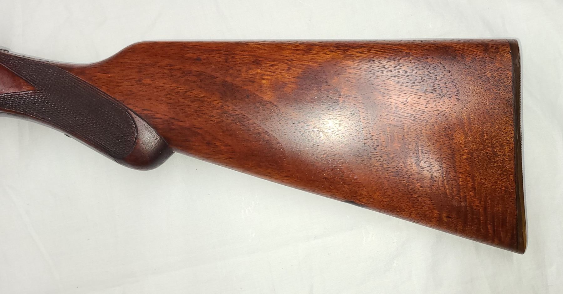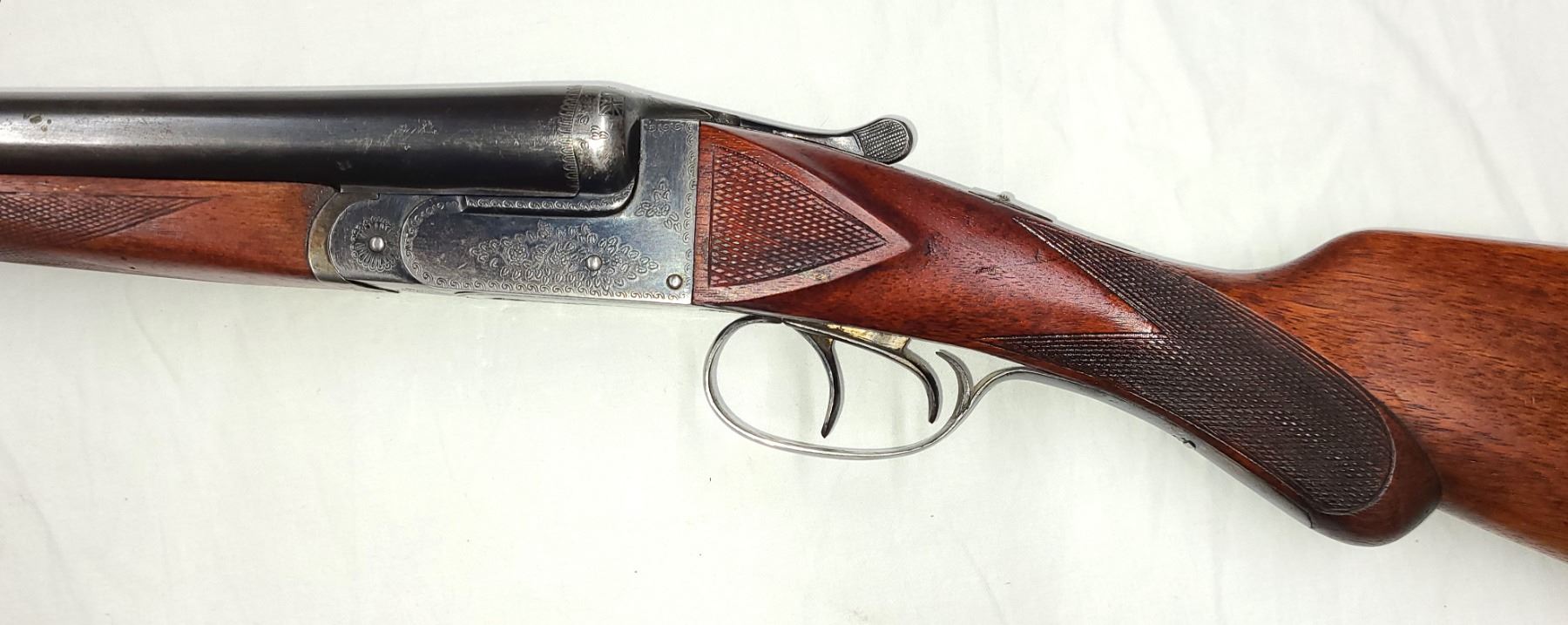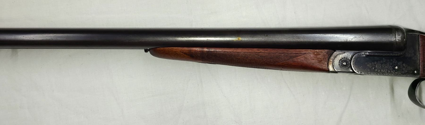 This tip up SXS shotgun appears to be in working order for 2 3/4 inch shells only.