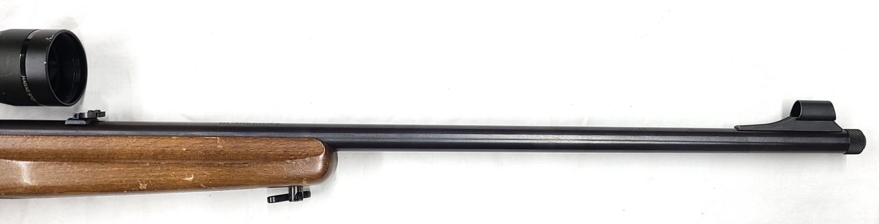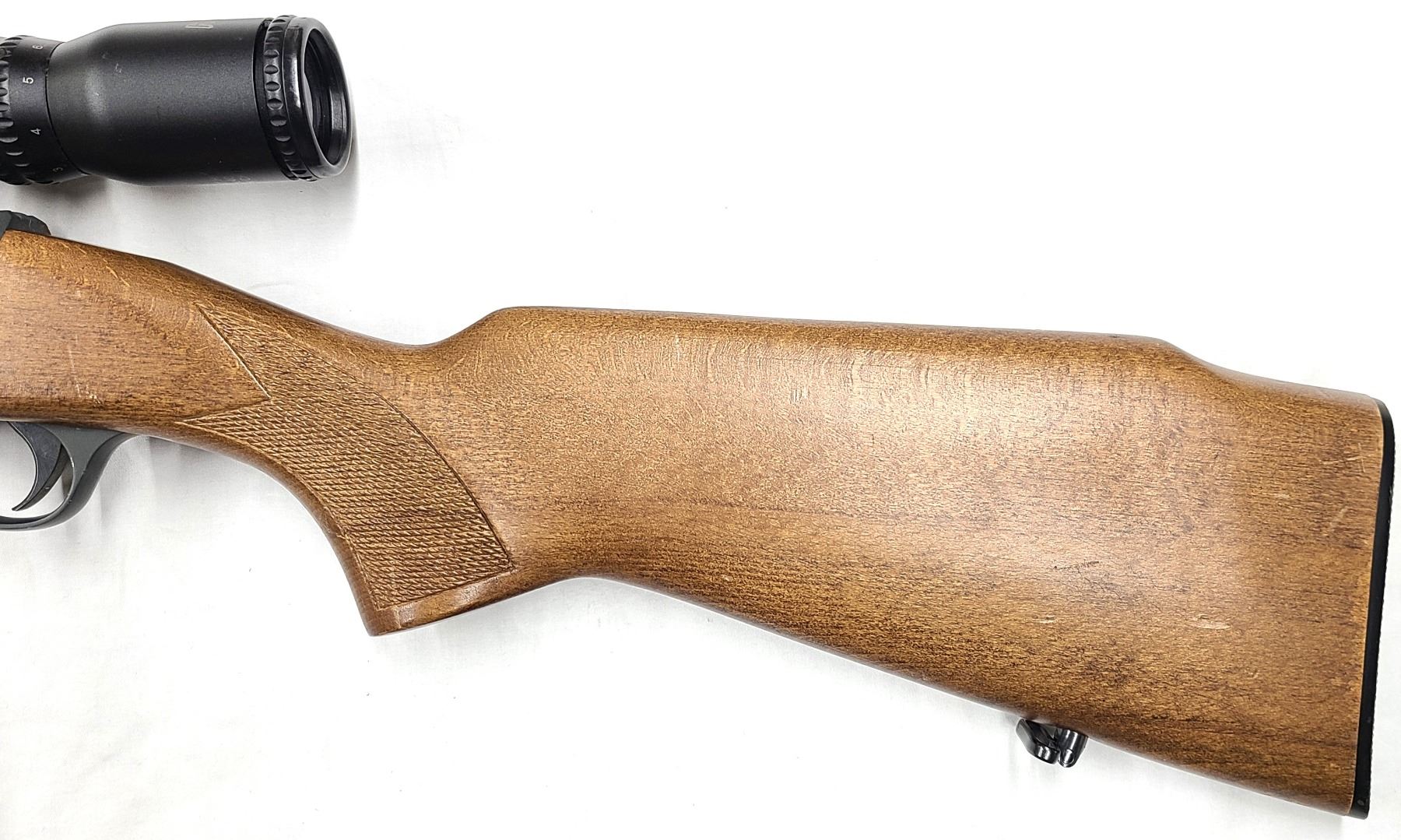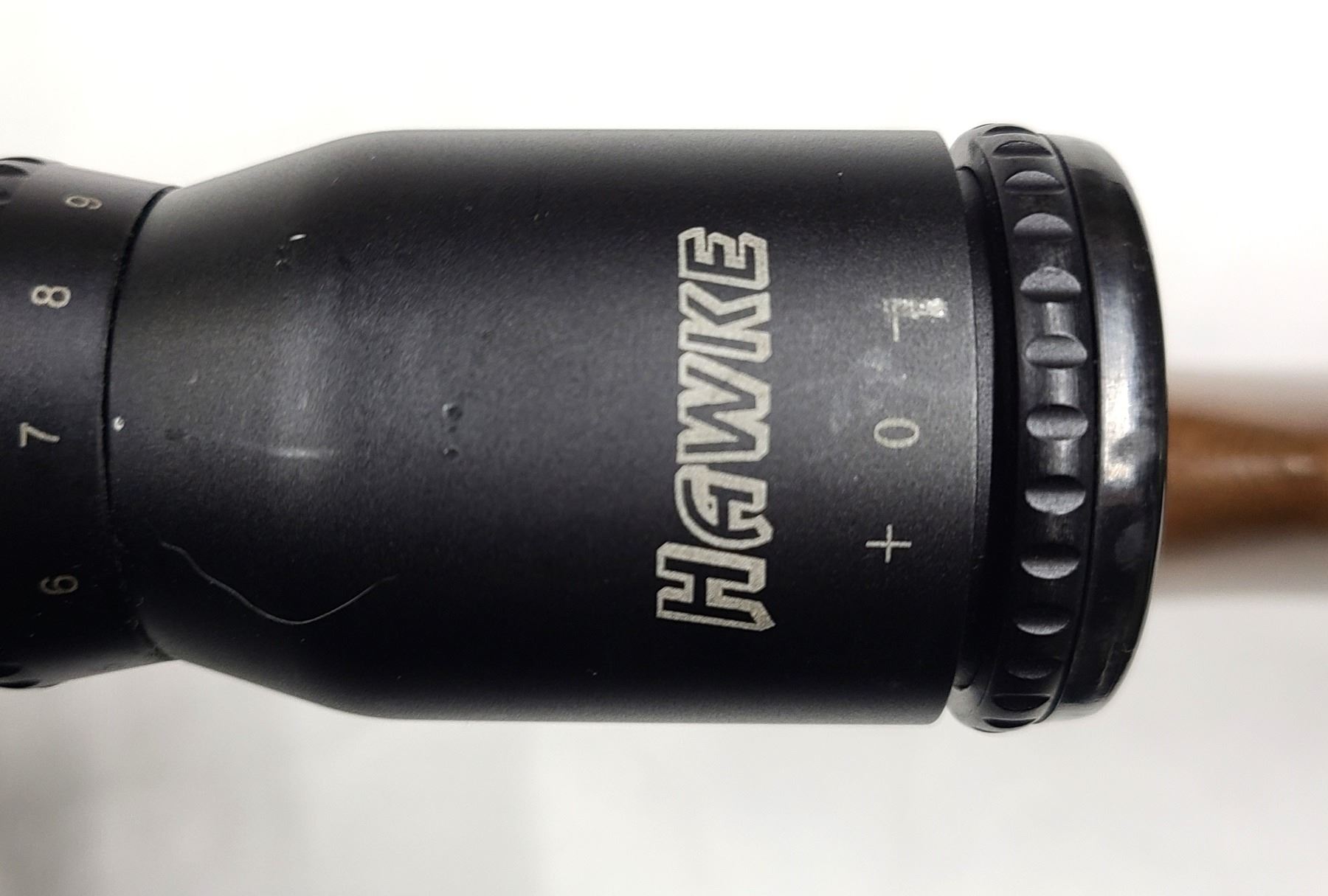 Factory grooved receiver for scope mounting has a older steel bodied Hawke 3-9 x 40 Scope installed. Scope still clear.