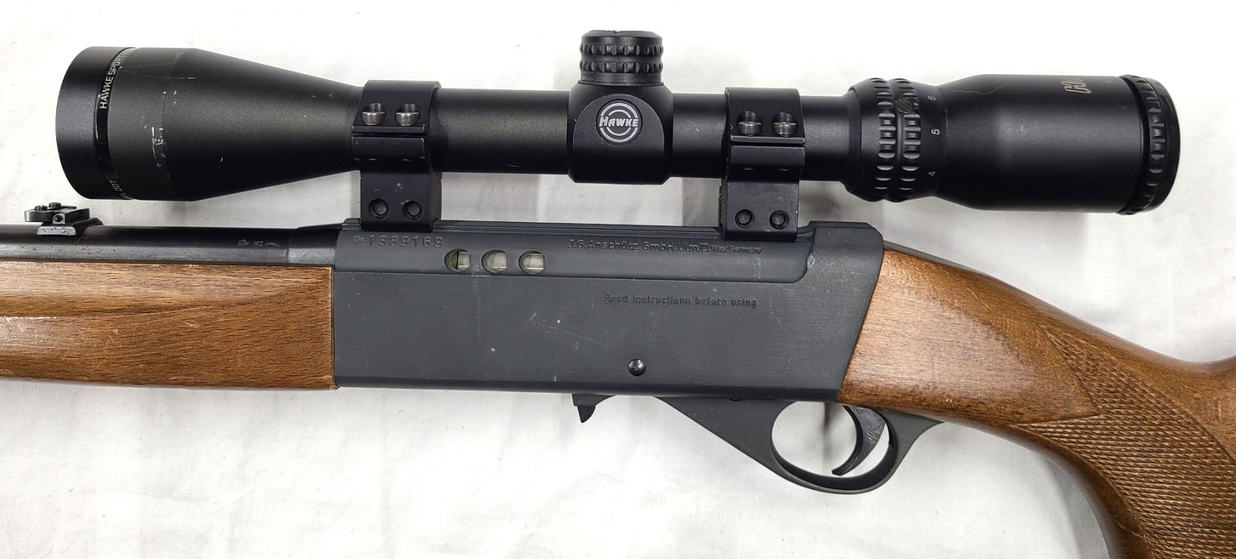 Lot 56 Anschultz Model 525 Semi Auto Rifle 22 cal c/w Hawke 3-9 x 40 Scope