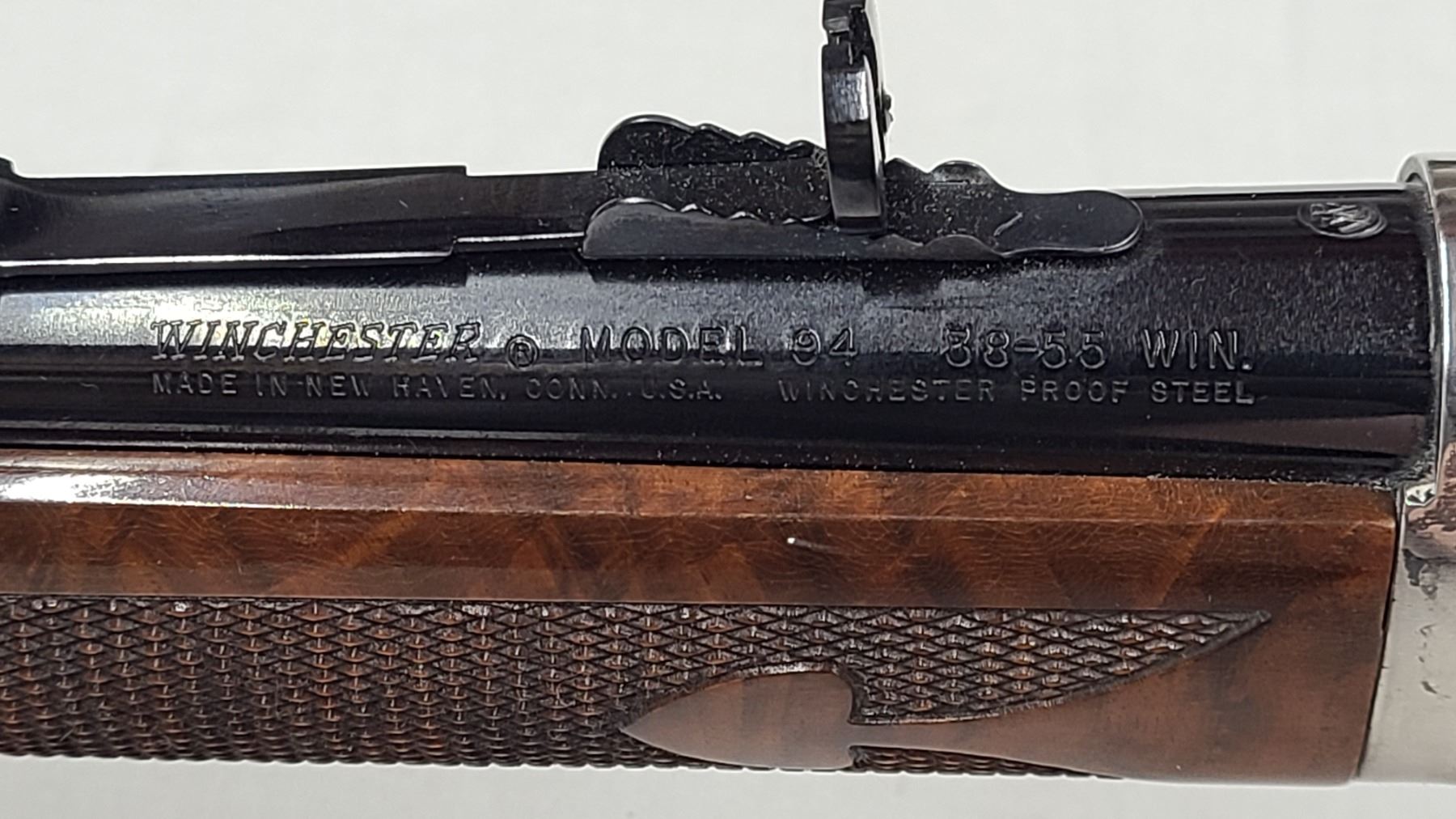 in .38-55 Win. This rifle, featuring a classic 20 inch barrel, is a stunning example of craftsmanship