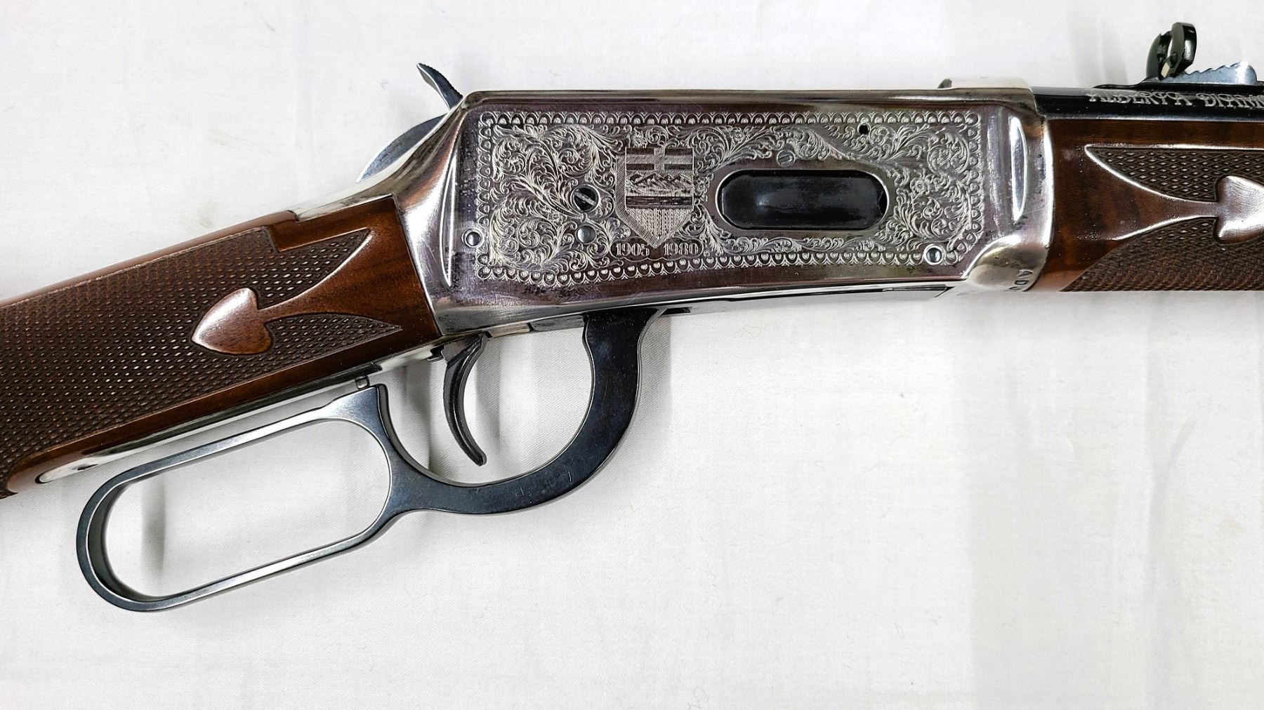 This limited-edition rifle was part of a series of commemorative firearms produced by Winchester to