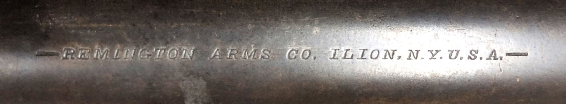 The barrel is marked on the top Remington Arms Co. Ilion, N.Y. U.S.A. The underside of the barrel is