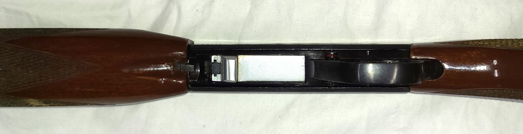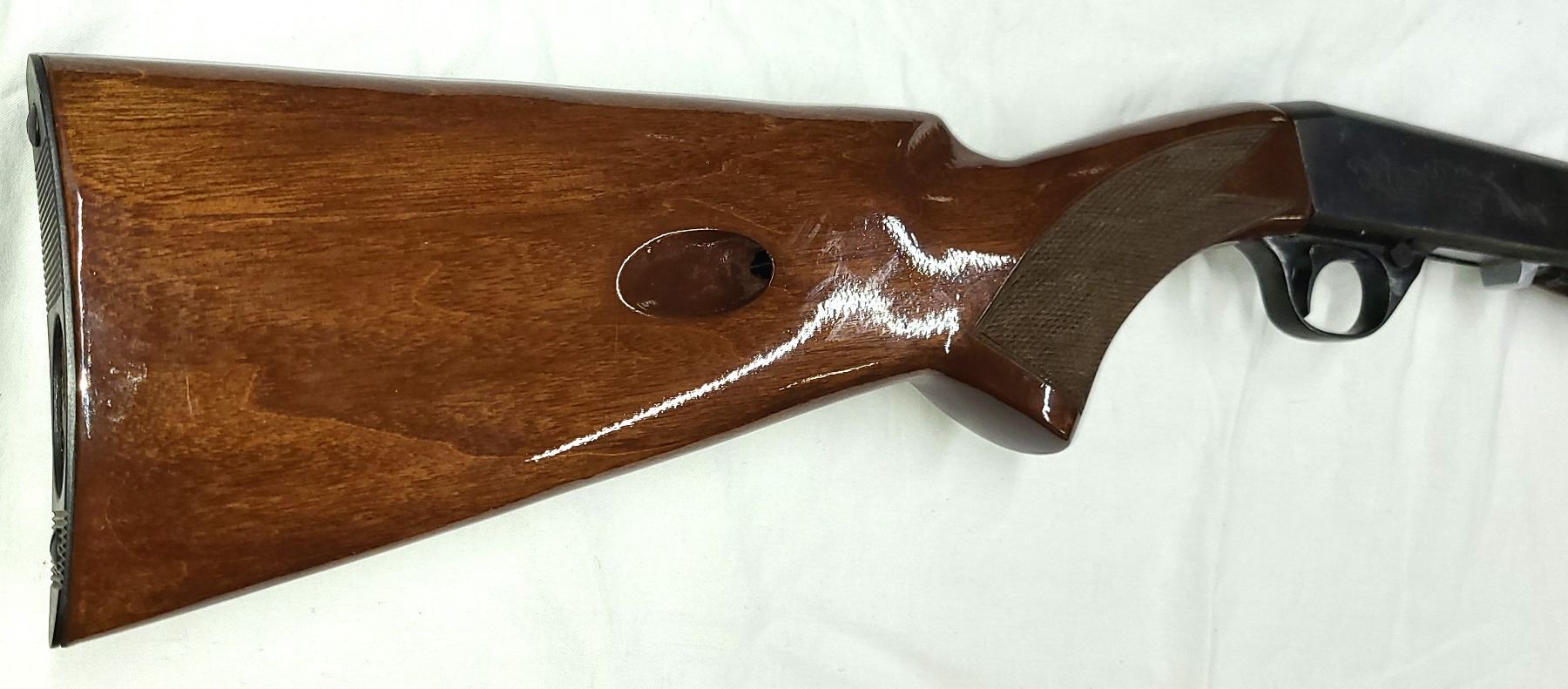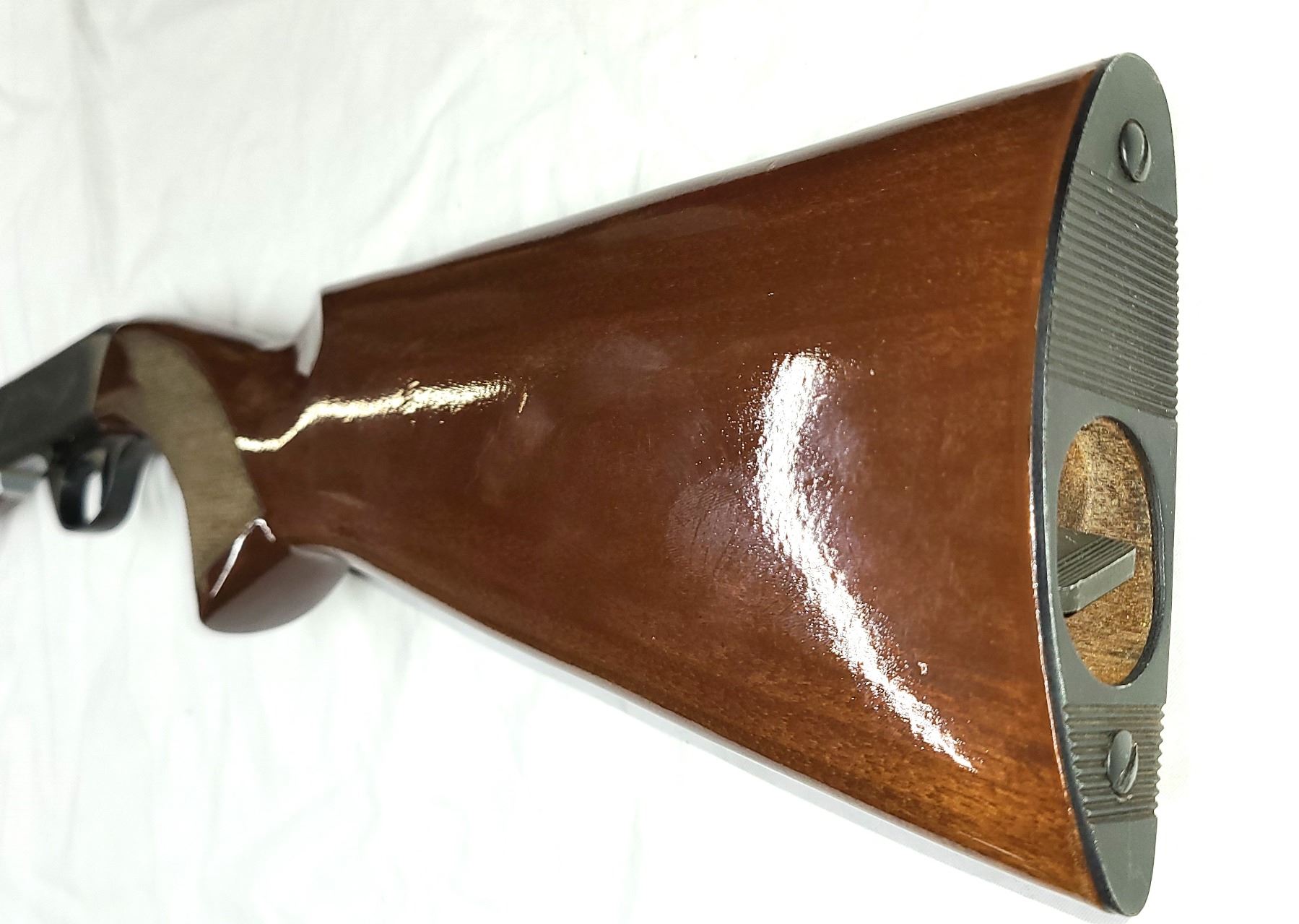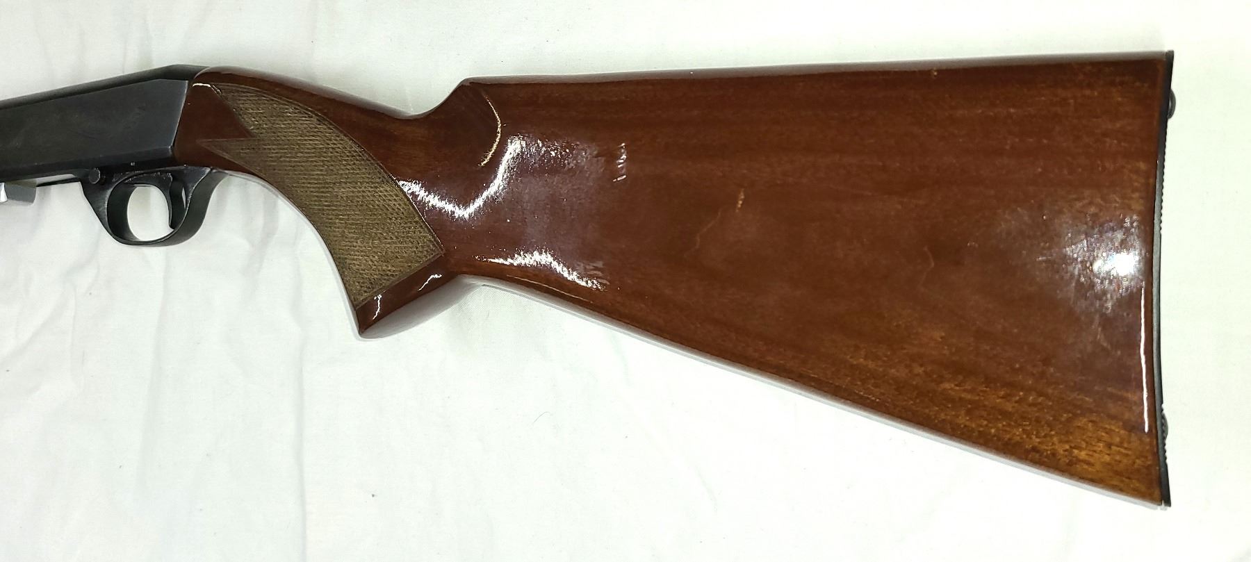 Plain Wood Stock, Checkered Grip, all in good condition with a few debts.