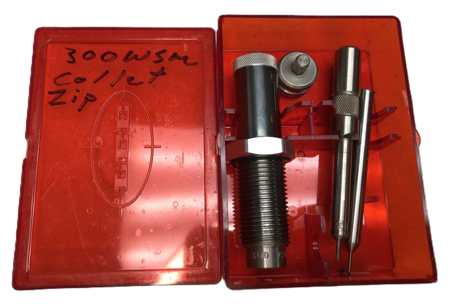 Collet Die, case length gauge, shell holder and a 300 WSM stamped