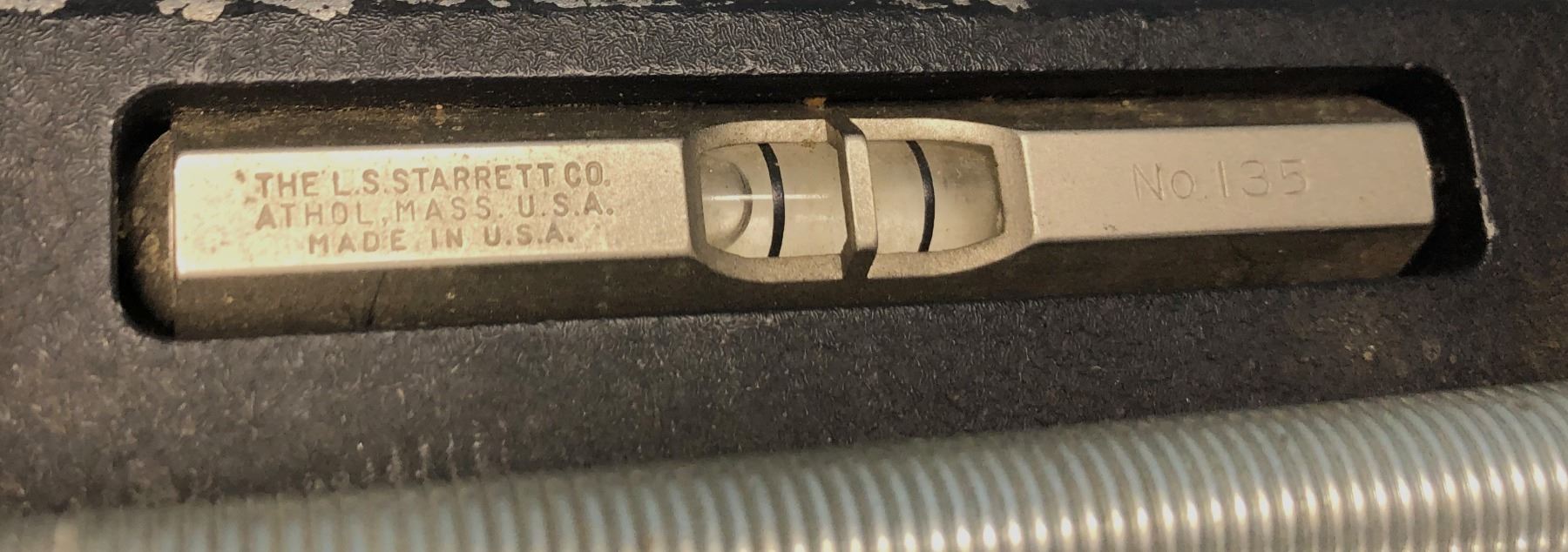 Reloading rest (?) with vintage Starrett level as shown and metal bases