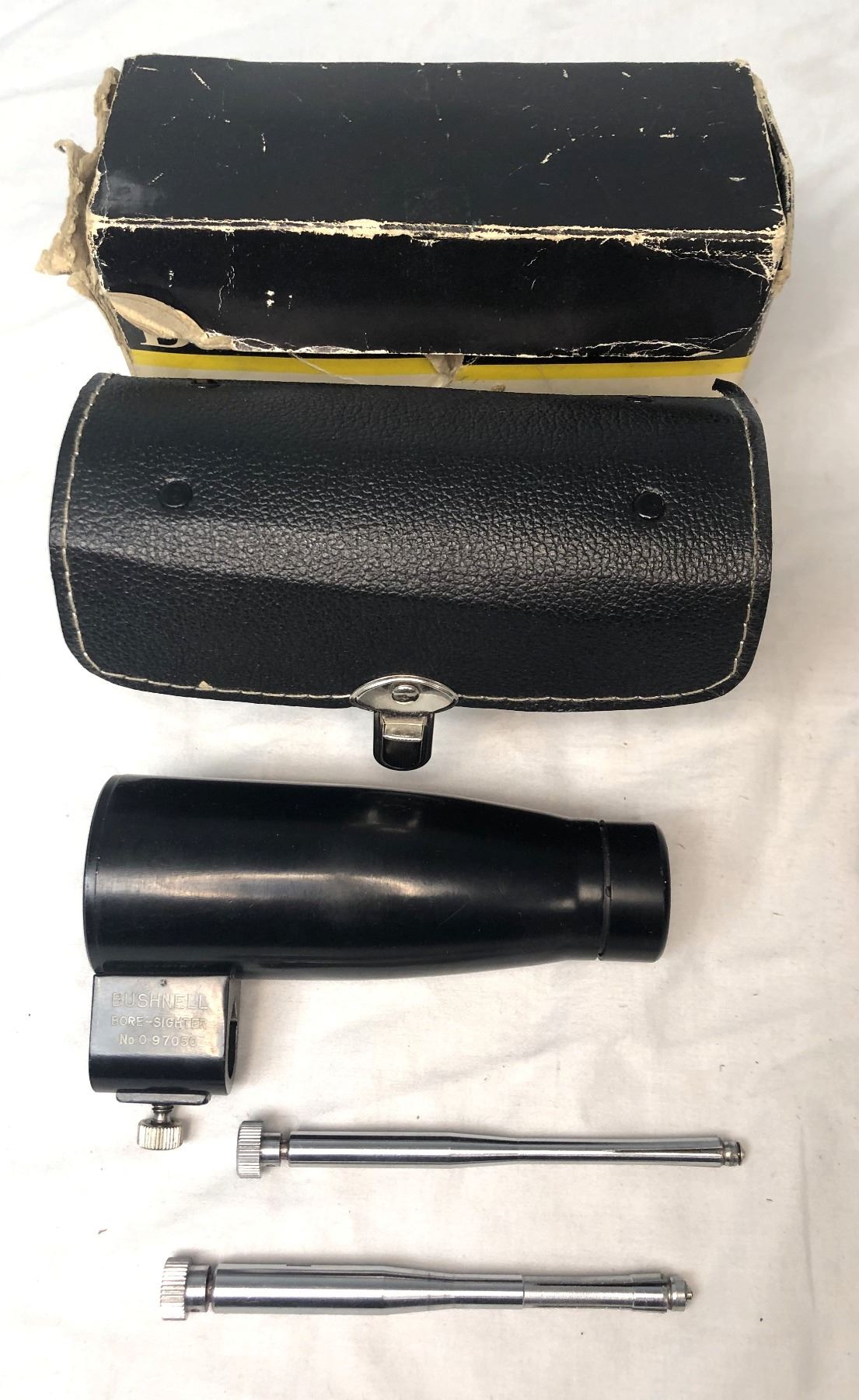 Vintage Bushnell bore sighter with a case as shown