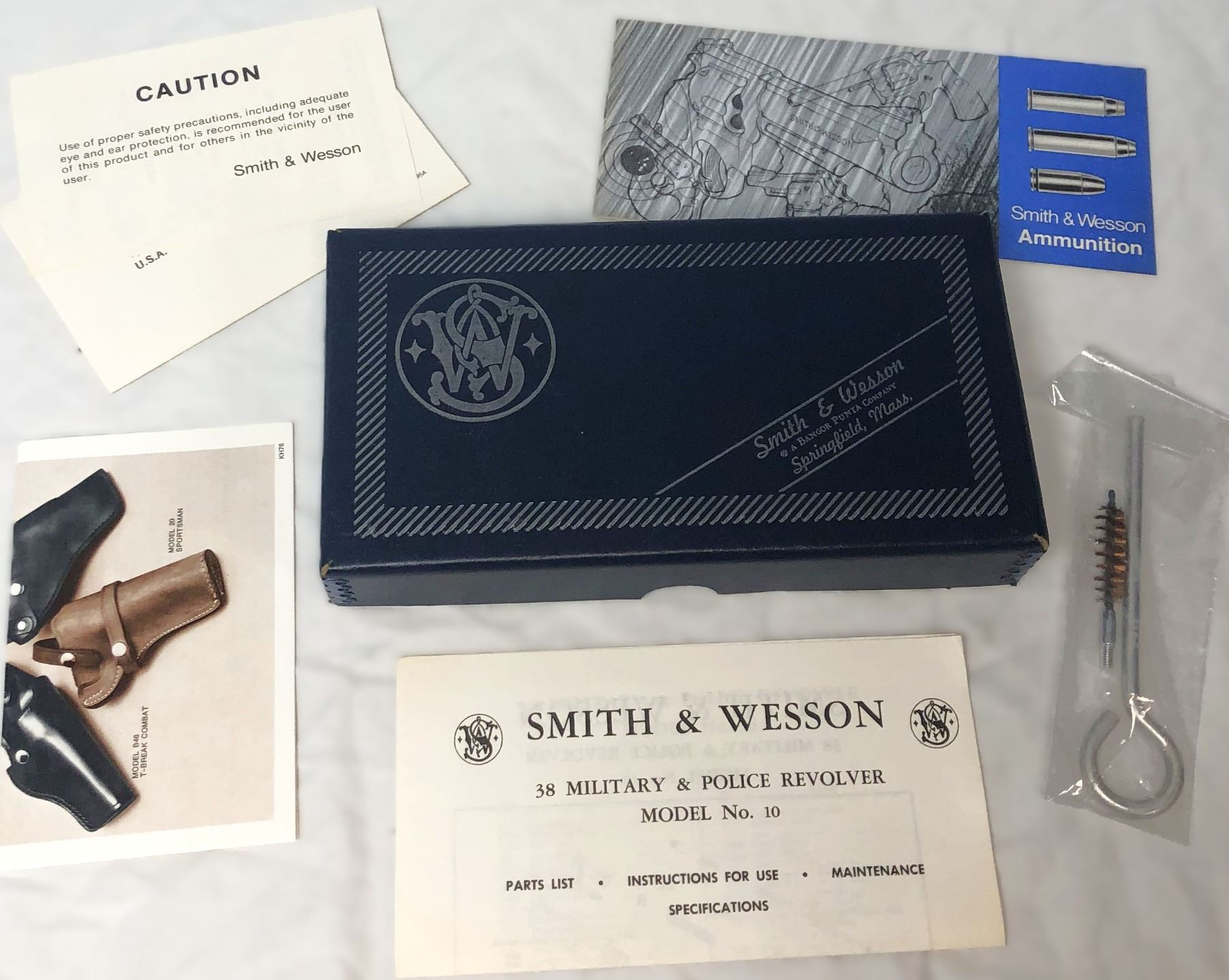 Vintage Smith and Wesson 10-7 revolver box with papers as shown