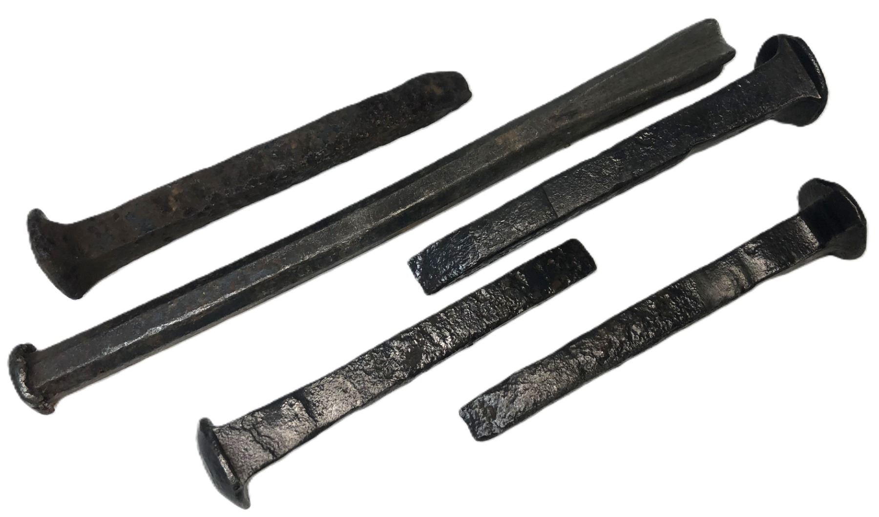 Lot of mixed Type Antique metal railroad spikes - 5 in lot