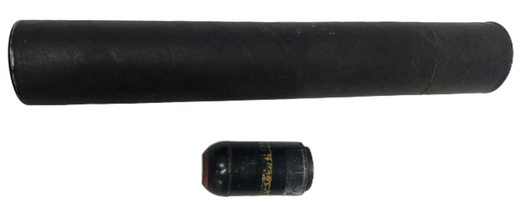 Lot 1099 37MM Cardboard shell carry tube c/w Steel Projectile - Teaching Aid