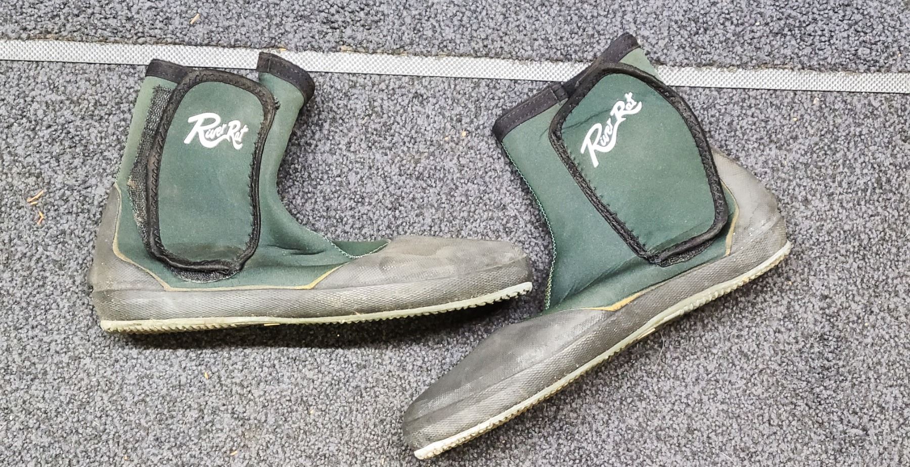 The boots are marked Size L and the Flippers are unmarked but appear XL in size.