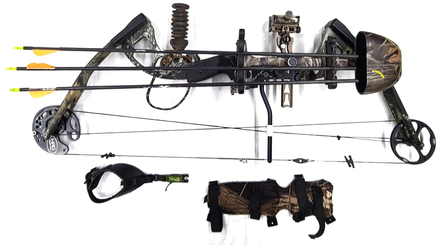 Comes with 3 arrows, Kiwkee quiver, Apex Gear fiber optic sights, Limbsaver,