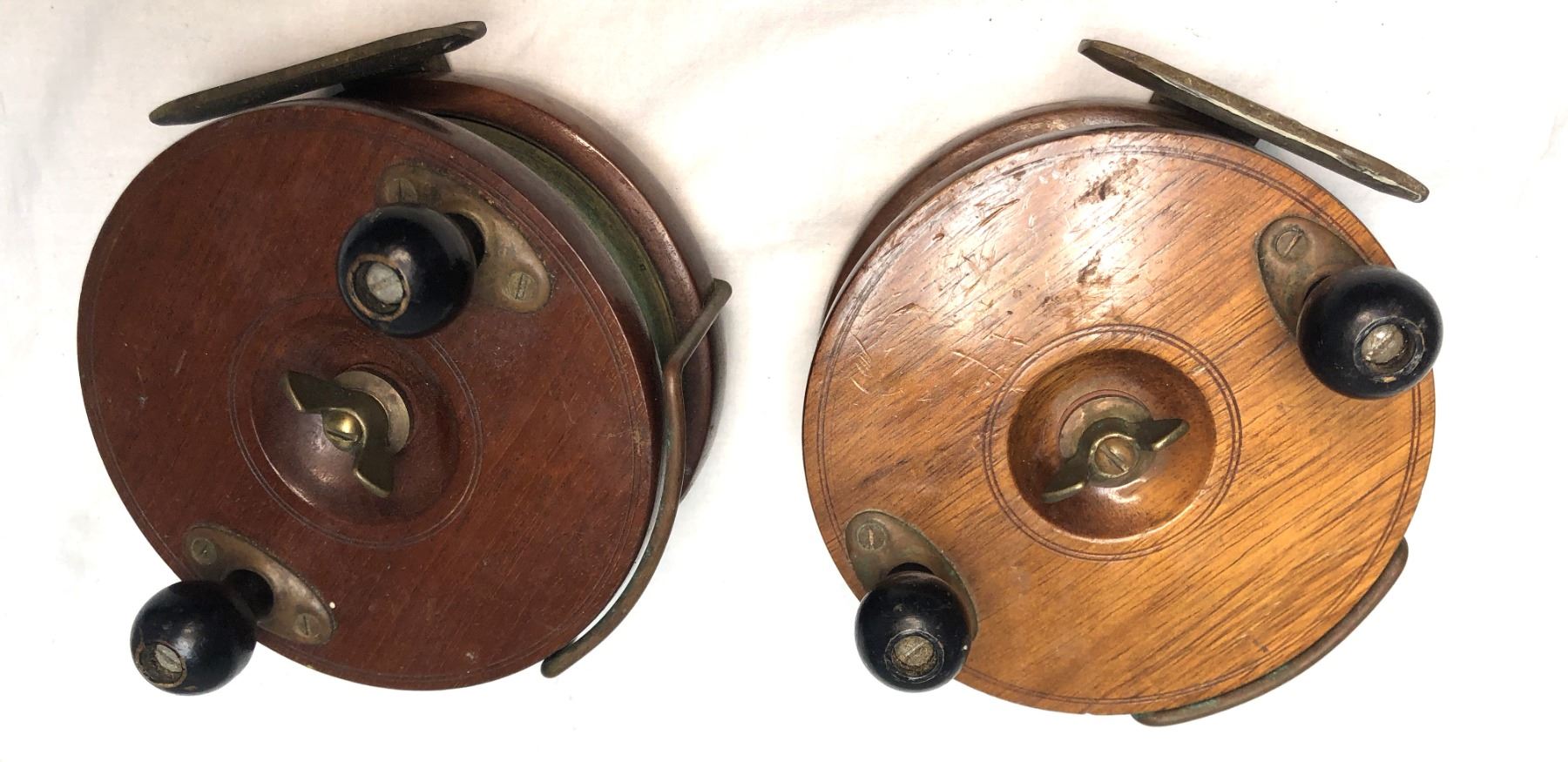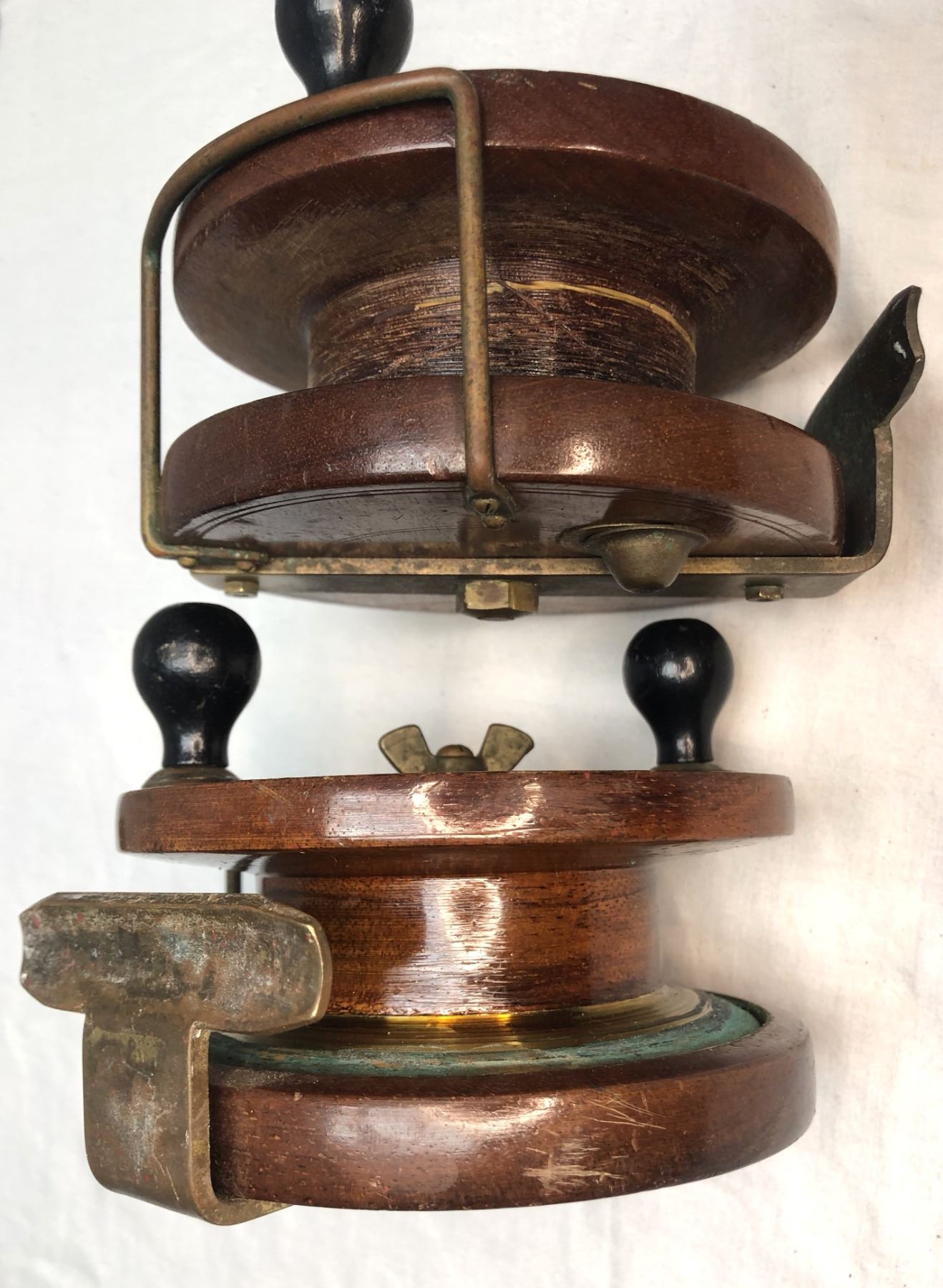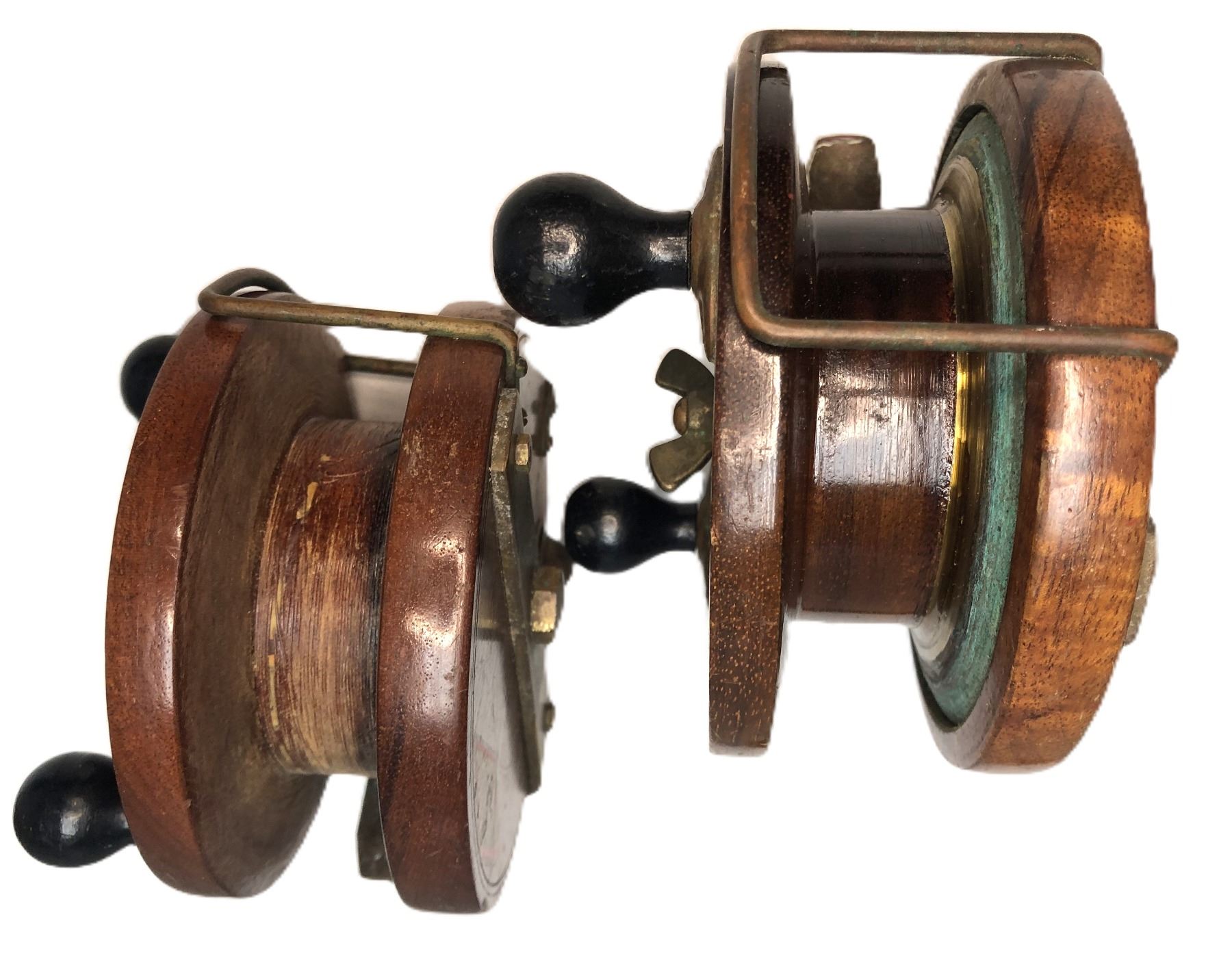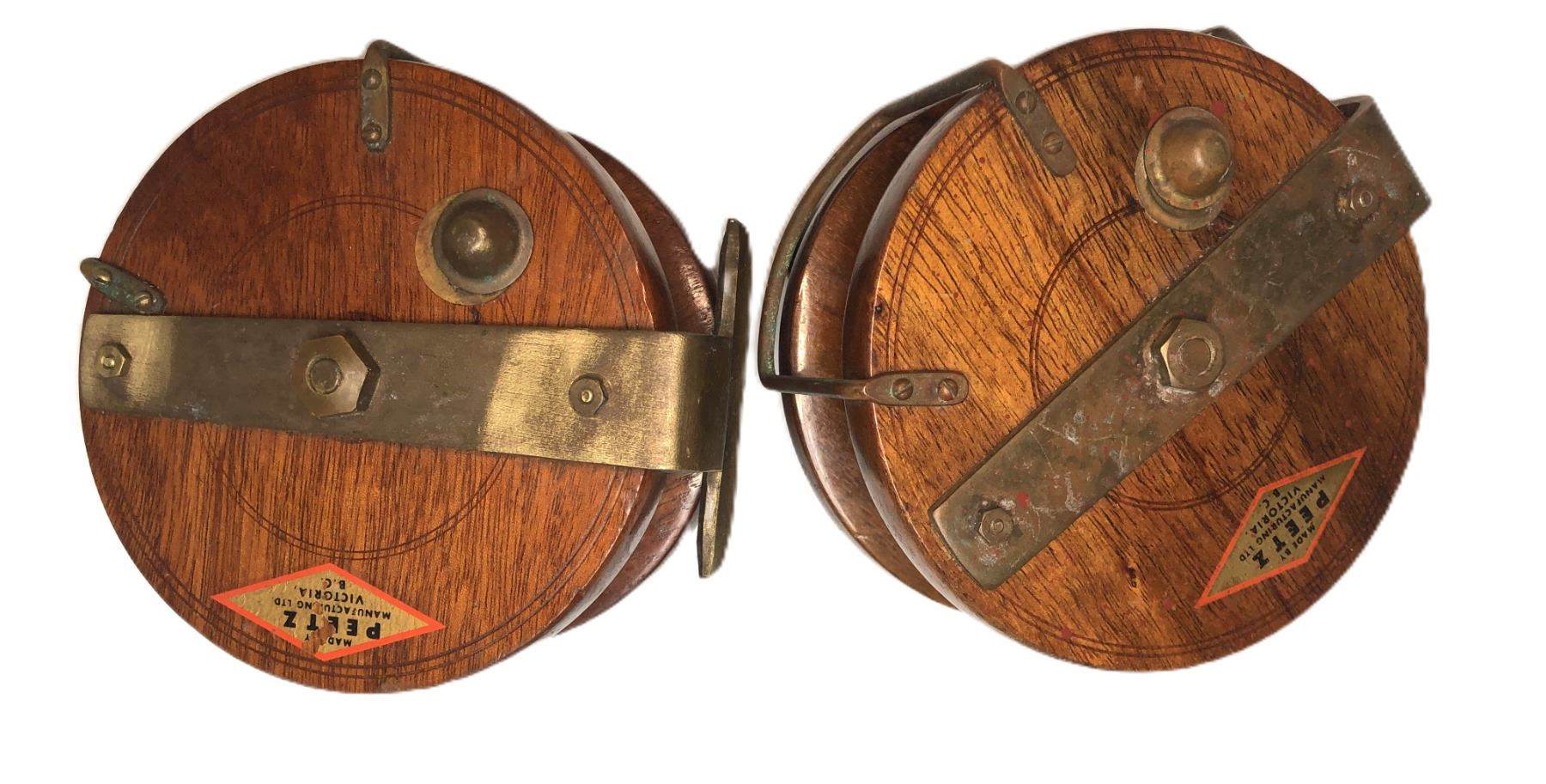 Lot of 2 vintage wood and brass Peetz reels