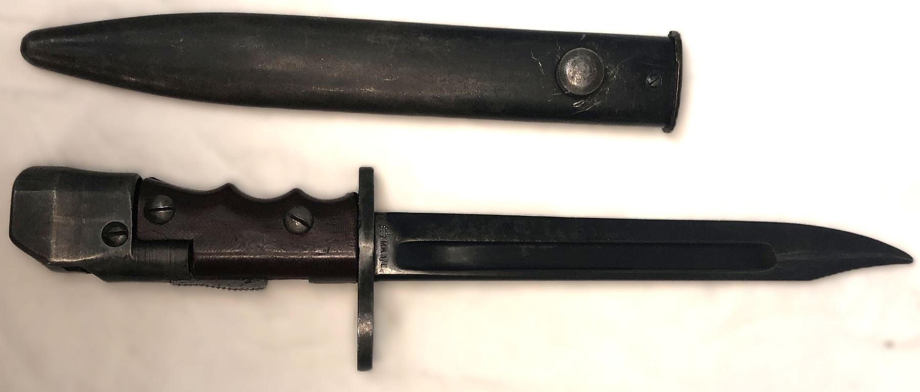 on the No. 9, FN C1 and L1A1 series of bayonets. Brown Paxolin grips
